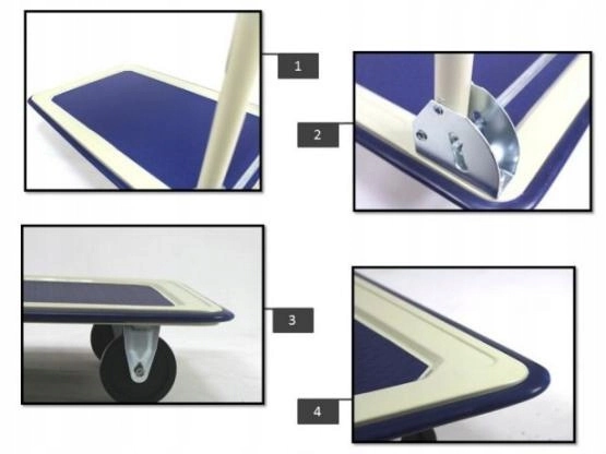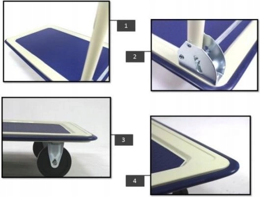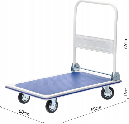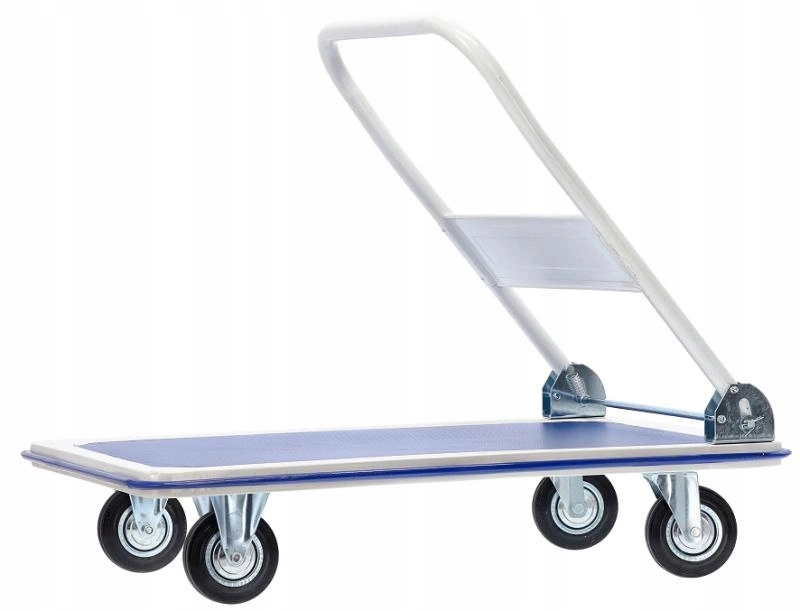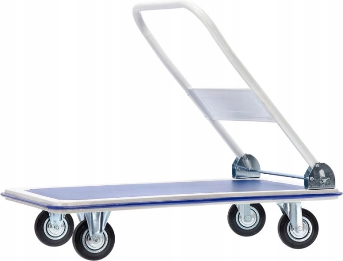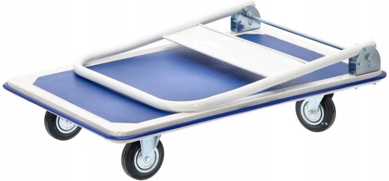Holdbar platformsvogn til daglig brug i hjemmet og i professionelle miljøer. Den stabile metalramme, den skridsikre platform og kvalitetshjul muliggør komfortabel og sikker flytning af tunge og voluminøse forsendelser. Takket være det sammenklappelige håndtag kan vognen efter brug nemt opbevares selv på mindre plads.