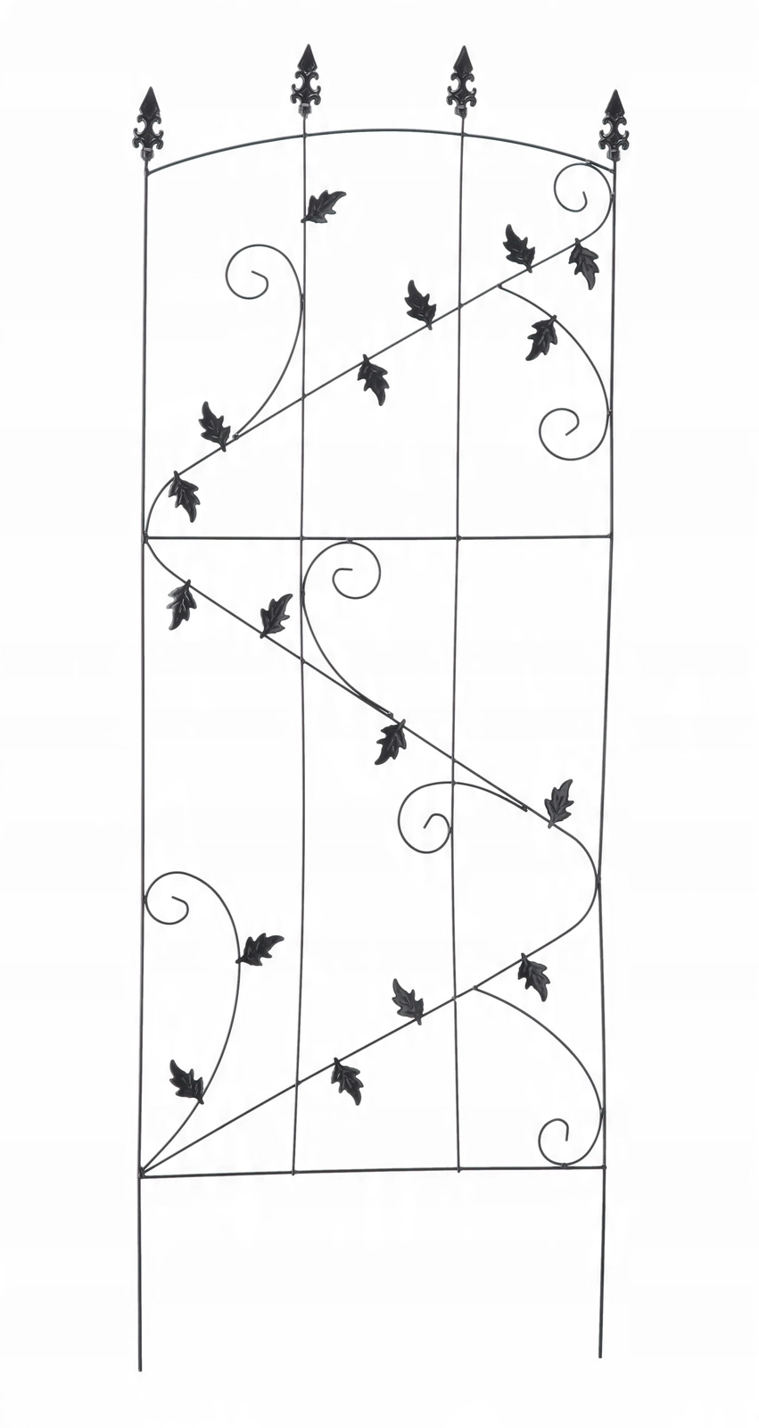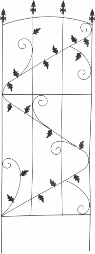 Dette stilfulde havegitter giver pålidelig støtte til klatreplanter som roser, klematis eller vedbend. Metalkonstruktionen i sort er stabil, robust og modstandsdygtig over for udendørs forhold, mens det elegante pynt giver dit område et repræsentativt udseende.