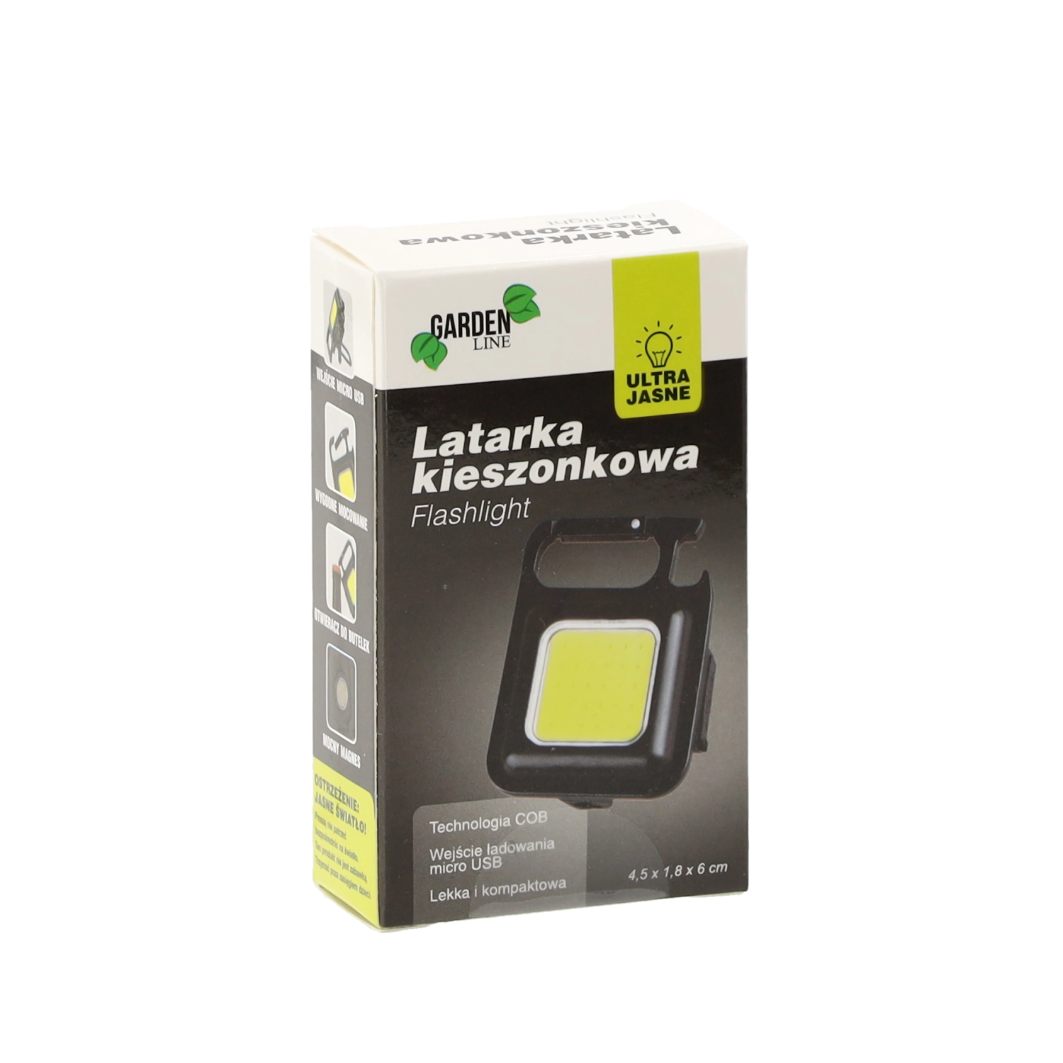 Praktisk og ekstremt kompakt mini LED-lommelygte, som du altid har lige ved hånden. Takket være den integrerede magnet og det sammenklappelige stativ kan du nemt fæstne eller stille den, hvor du har brug for lys. Opladning via micro USB eliminerer behovet for at købe batterier – ideel til værkstedet, bilen, camping og daglig brug.
