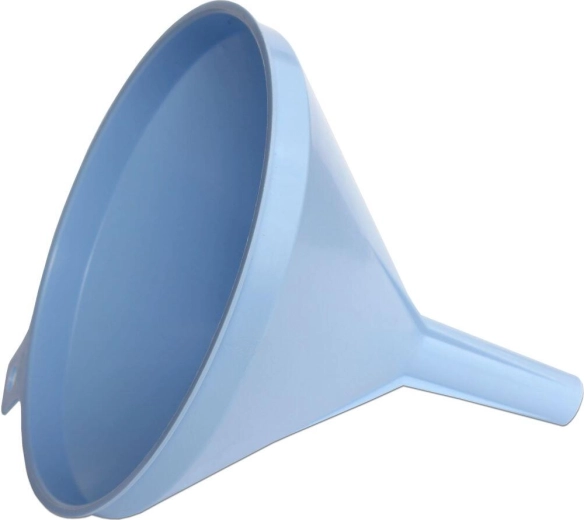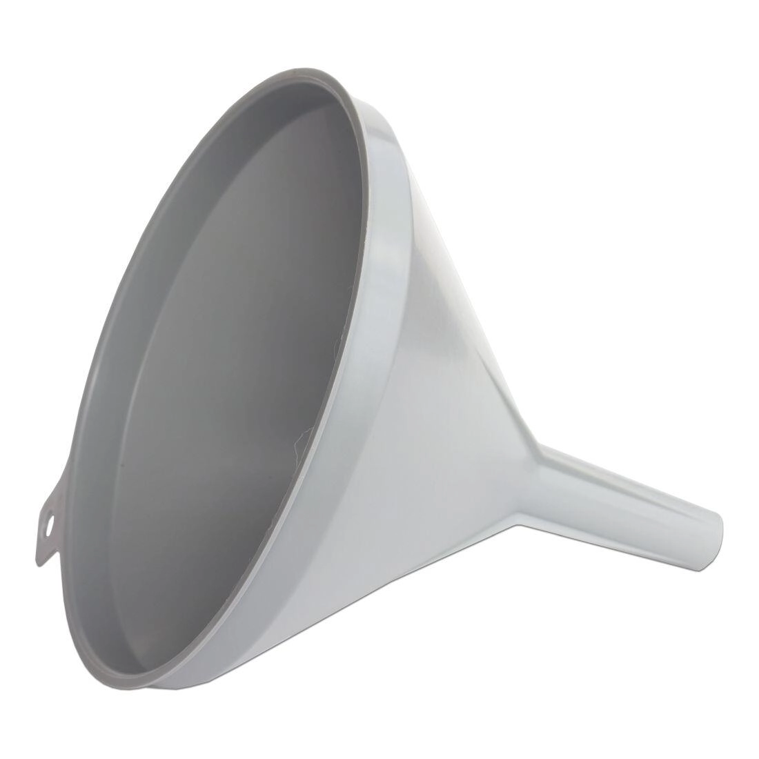Denne universelle plasttragt 18 cm gør det nemt at hælde væsker præcist og sikkert uden at spilde. Takket være den brede åbning er den velegnet til flasker, dunke og beholdere med større åbninger. Det praktiske design og den lave vægt gør den uundværlig i køkkenet, i haven og i garagen.