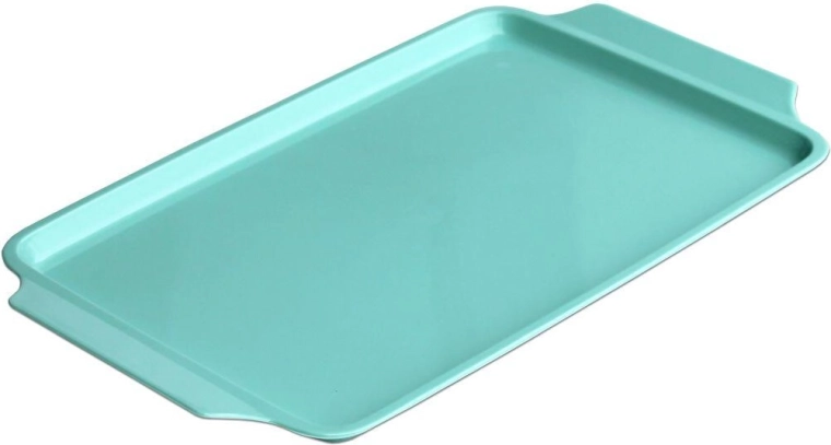 Den alsidige plastbakke på 30 × 18 cm er ideel til daglig brug i køkken, spisestue og på kontor. Perfekt til servering af drikkevarer, smørrebrød eller desserter, og den forhøjede kant hjælper med at forhindre uønsket spild.