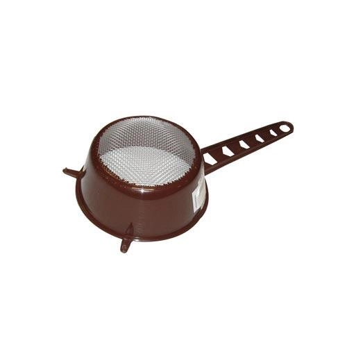 Praktisk køkkensi med en diameter på 12 cm til daglig brug. Takket være det solide håndtag, to kroge til fastgørelse på kanten af skålen og et øje til ophæng er den altid lige ved hånden. Velegnet til sining, sigten og dekoration med flormelis eller kakao. Let plastmateriale i mix af farver (marmor, brun).