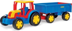 Vores store traktor fra Gigant-serien er udstyret med en anhænger med åbenbar bagklap. Disse køretøjer er ideelle legetøj til børn, uanset om det handler om at bygge, laste eller flytte materialer. Den bevægelige skovl på traktoren fungerer som bulldozer eller læssemaskine, hvilket øger legeglæden. Fordelene ved denne traktor er høj kvalitet, holdbarhed og stærk konstruktion - traktoren bærer op til 100 kg og anhængeren 60 kg.
