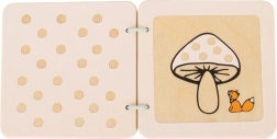 Takket være de kompakte mål 9 × 9 × 2,5 cm er bogen ideel både hjemme og på farten. Det naturlige materiale er let at rengøre og egner sig til daglig leg. Bogen hjælper børn med at udvikle berøringssansen, visuel opmærksomhed og hånd–øje-koordination på en legende måde.