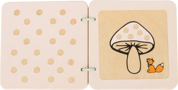 Den træbaserede sansebog med ræven Lex giver børn deres første møde med enkle former, udskæringer og illustrationer, som stimulerer nysgerrighed og fantasi. Robust udførelse, glatte kanter og metalkringe sikrer sikker og behagelig bladring – selv for de mindste hænder.