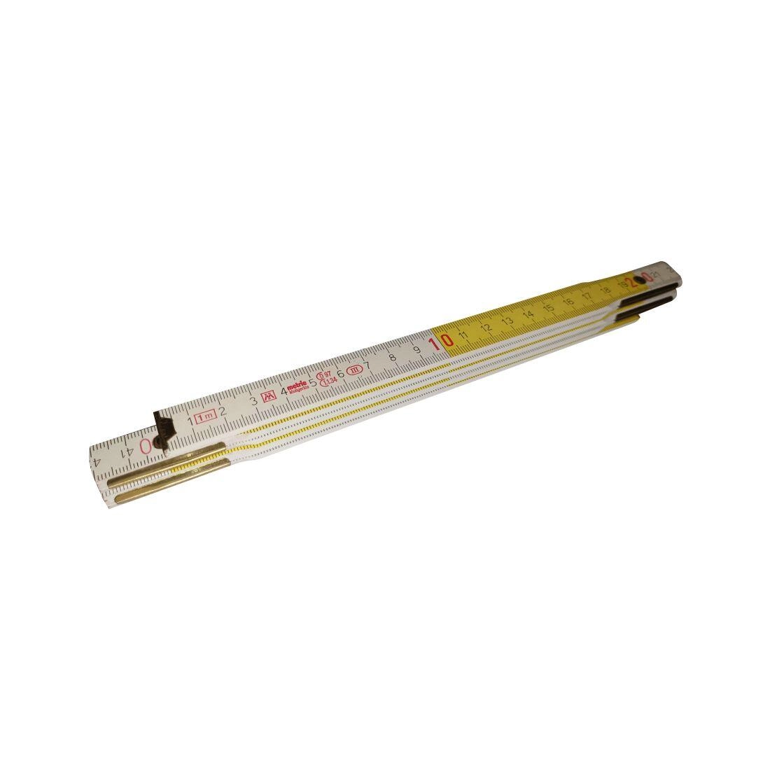 Praktisk sammenklappeligt meter af ahorntræ på 1 m med fem led i farvekombinationen hvid/gul. Ideel til daglig brug, præcis og holdbar. Kompakte mål, solidt trækonstruktion og nem aflæsning af skalaen gør denne tommestok til et pålideligt værktøj til både værksted og hjem.