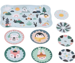 I pakken finder du alt til det perfekte teselskab: en stor bakke til nem servering, 4 kopper med underkopper, 4 desserttallerkener og en kande med låg. Delene er lette, robuste og nemme at vedligeholde. Designet af Michelle Carlslund med venlige arktiske dyr stimulerer børns fantasi og udvikler blidt sociale færdigheder gennem leg.