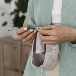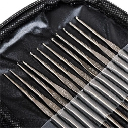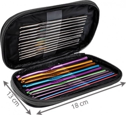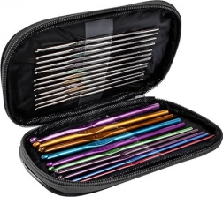 Kompakt etui af syntetisk læder holder alle værktøjer samlet og gør det nemt at transportere. Den perfekte rejseledsager, uanset om du hækler i bilen eller i toget.