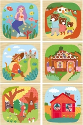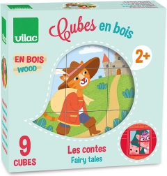Vilac træklodser Historier giver børn glæden ved at opdage og samle. Af ni solide klodser kan der samles seks forskellige eventyrmotiver, som udvikler fantasien og træner koncentrationen. Takket være robust træ og tryk af høj kvalitet er legetøjet holdbart og velegnet til daglig leg.