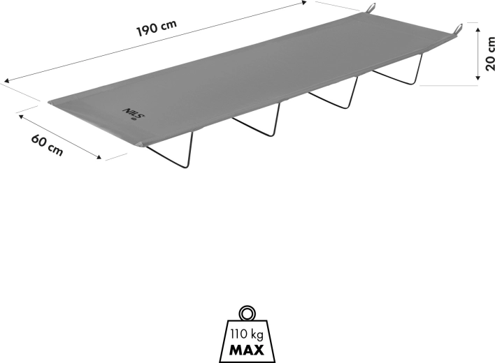 Den sammenklappelige campingfeltseng fra NILS Camp er designet til maksimal komfort og lang levetid. Stålrammen fordeler vægten jævnt, eliminerer gennemhæng og sikrer stabilitet selv ved højere belastning. Betrækket af holdbar polyester 600D Oxford er stærkt, åndbart og behageligt at røre ved – ideelt til varme sommernætter.