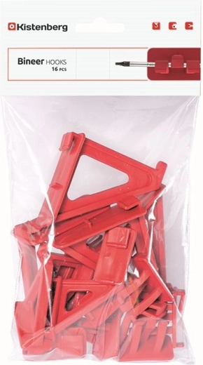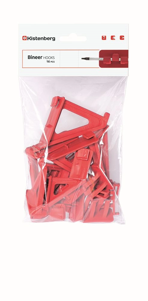 Sættet af holdere BINEER HOOKS er en smart løsning til organisering af nøgler, skruetrækkere, hamre, file og andet tilbehør. Det modulære design muliggør nem tilpasning af layoutet efter aktuelle behov og effektiv udnyttelse af den lodrette plads. Den stabile fastgørelse minimerer risikoen for, at værktøj falder ned, og frigør arbejdsfladen.