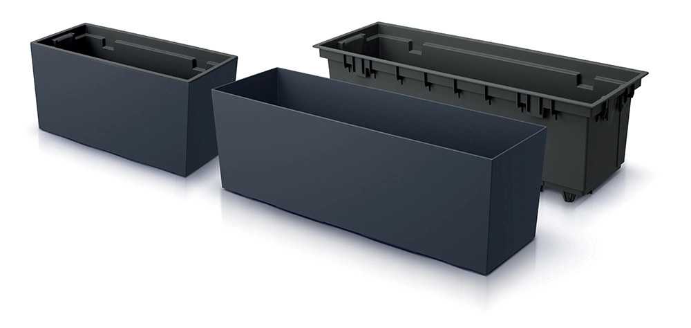 Der medfølger en aftagelig indsats, som gør plantning og vanding nemmere og reducerer tiden til vedligeholdelse. Den rektangulære form giver rigelig plads til krydderurter, prydgræsser og blomstrende planter.