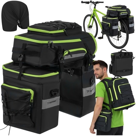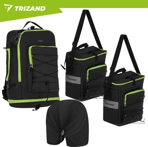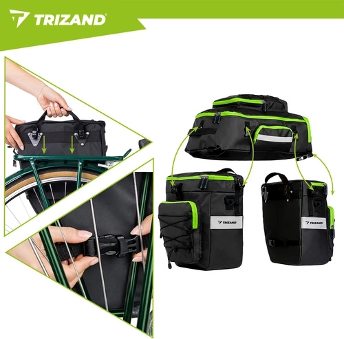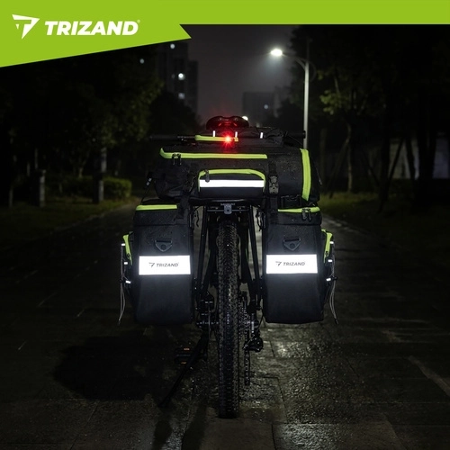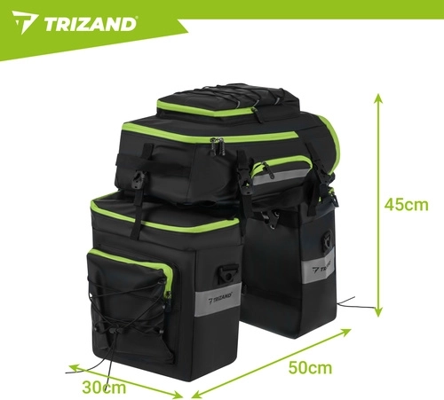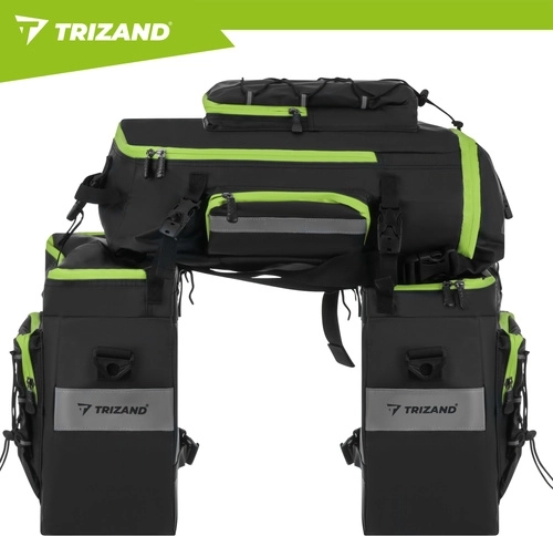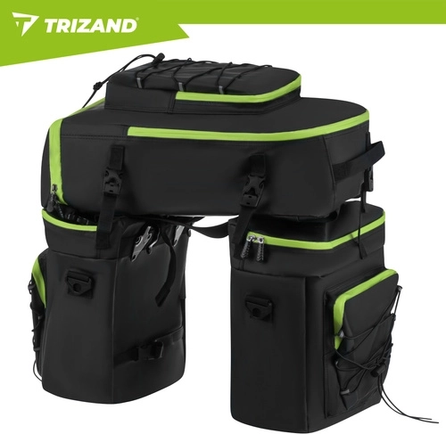 Den praktiske TRIZAND 3-i-1 cykeltaske med et volumen på 65 l kombinerer to sidelommer og en øverste taske/rygsæk for maksimal fleksibilitet på ture, pendling og bikepacking. Robuste vandtætte materialer, sikker montering på bagagebærer, reflekselementer og regnslag beskytter dine ting i al slags vejr.