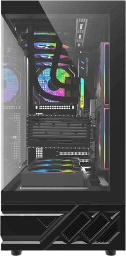 DarkFlash DS950 er et førsteklasses kabinet til gamere og krævende skabere, der ønsker et rent design og maksimal funktionalitet. To store gennemsigtige paneler uden lodret profil giver en bred 270° visning af systemet og lader dig flot fremvise komponenter med RGB-belysning eller vandkøling. Den robuste konstruktion i 0,5 mm SPCC stål giver et stabilt fundament for moderne hardware.
