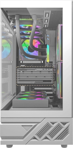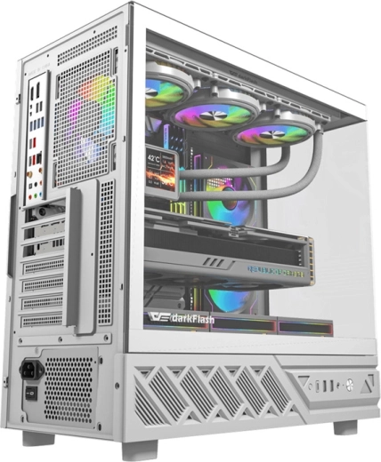 Det stilfulde computerkabinet DarkFlash DS950 i hvid farve tilbyder 270° panoramaudsyn gennem hærdet glas, fremragende luftgennemstrømning og omfattende tilslutningsmuligheder inkl. USB‑C 3.2 Gen 2. Understøtter ATX/M-ATX/ITX‑bundkort, rummer GPU op til 400 mm og CPU‑køler 180 mm. Inkluderer 6 forinstallerede 120 mm blæsere og støvfiltre for ren og stille drift.