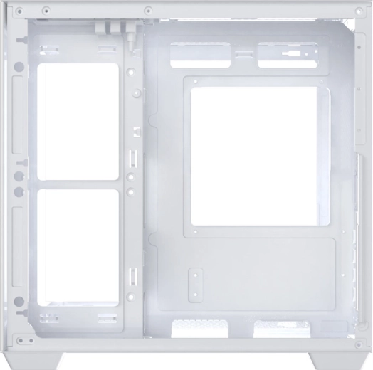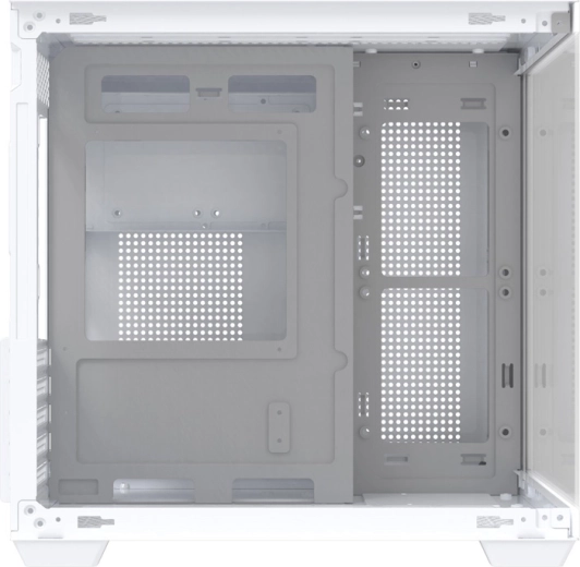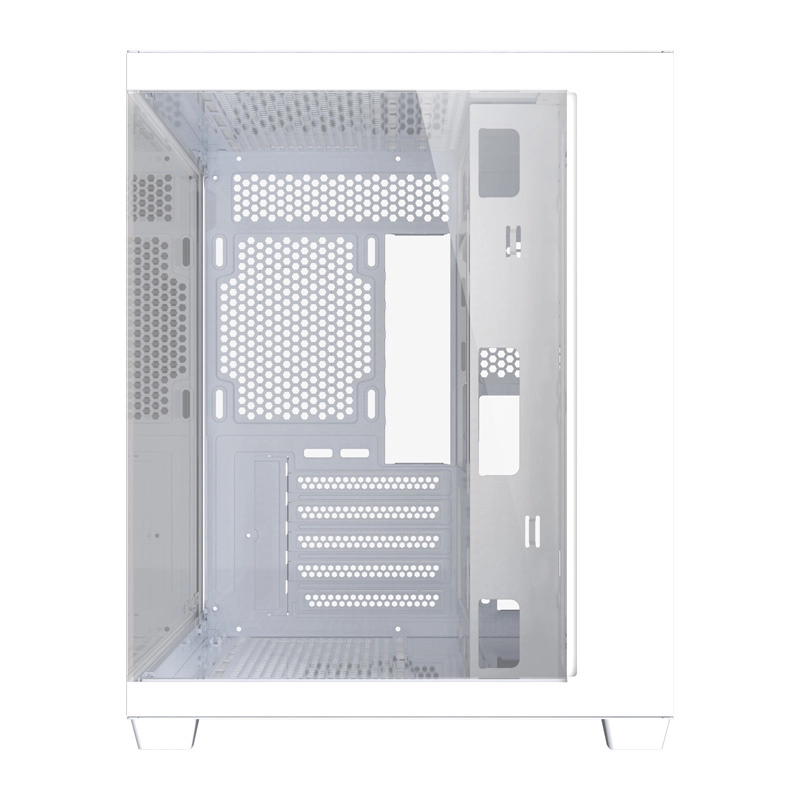 To paneler af hærdet glas giver uhindret udsyn til indmaden – perfekt til at vise RGB og et rent komponentlayout.