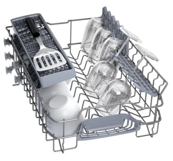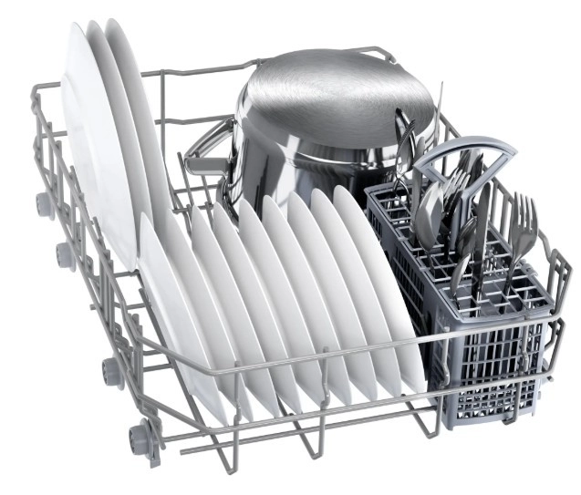 Denne smalle indbyggede opvaskemaskine BOSCH Serie 4 er ideel til mindre køkkener, men klarer nemt dagligt service. Takket være Home Connect kan du nemt parre den med din telefon, se programstatus og betjene den bekvemt på afstand. Det integrerede betjeningspanel i rustfrit stål er overskueligt og robust, og indersiden i rustfrit stål sikrer lang levetid og hygiejne.