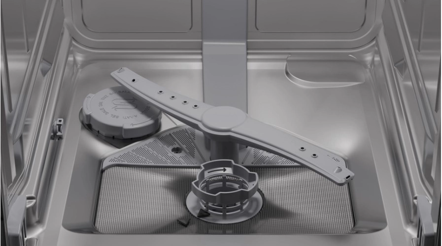 Det nederste spulearm i kombination med et fint rustfrit stålfilter sikrer jævn vandfordeling, opfanger urenheder og øger vaskeeffektiviteten samt den langsigtede pålidelighed.