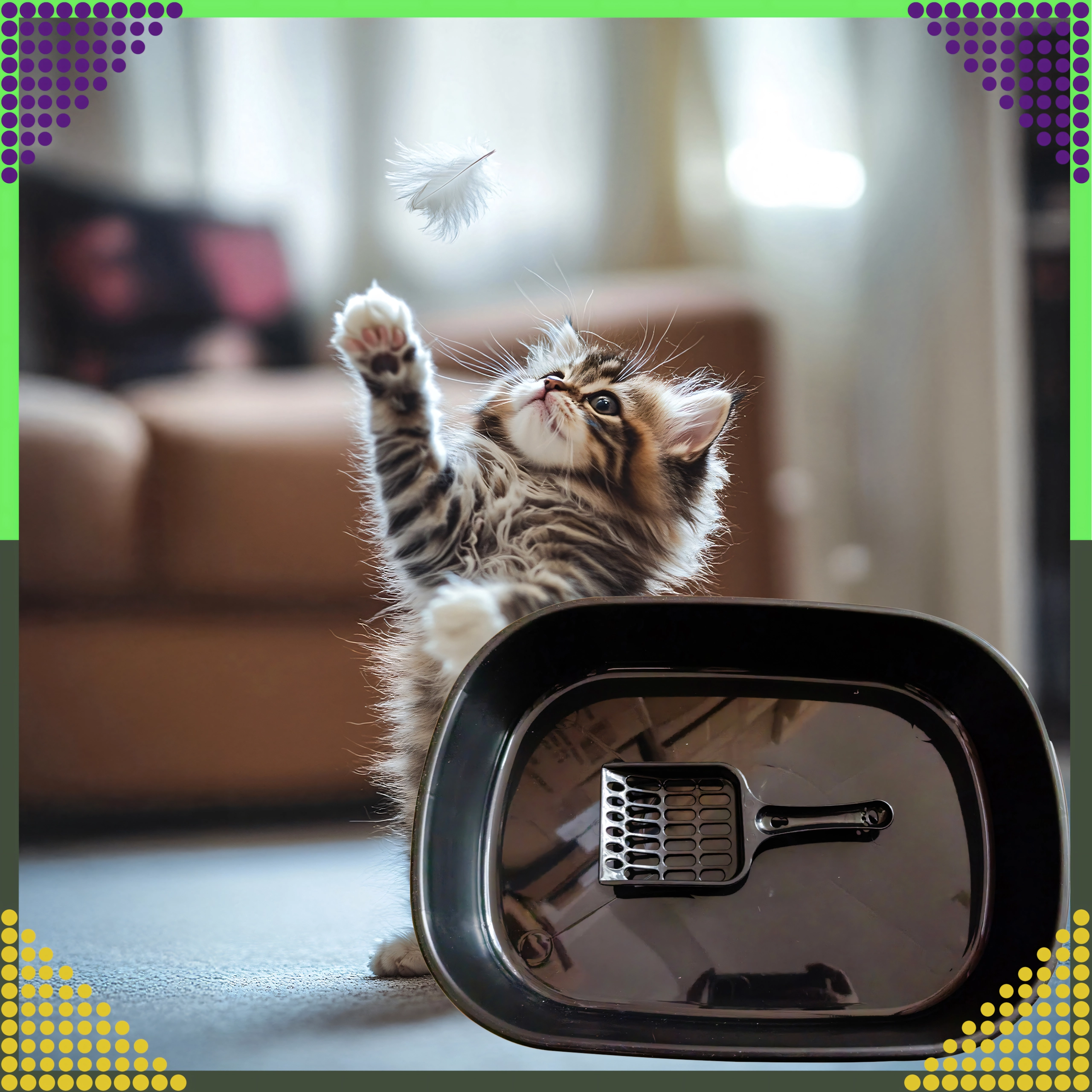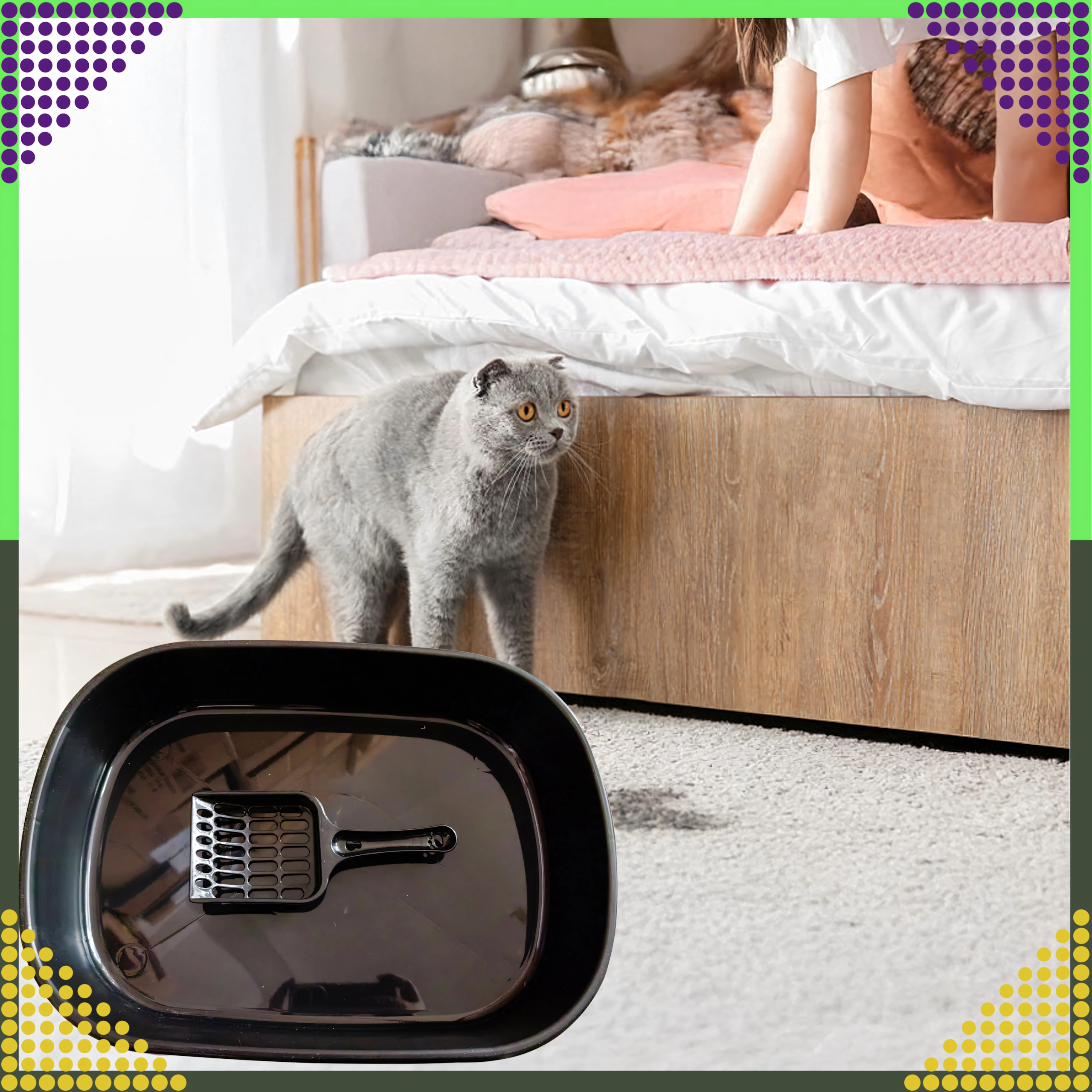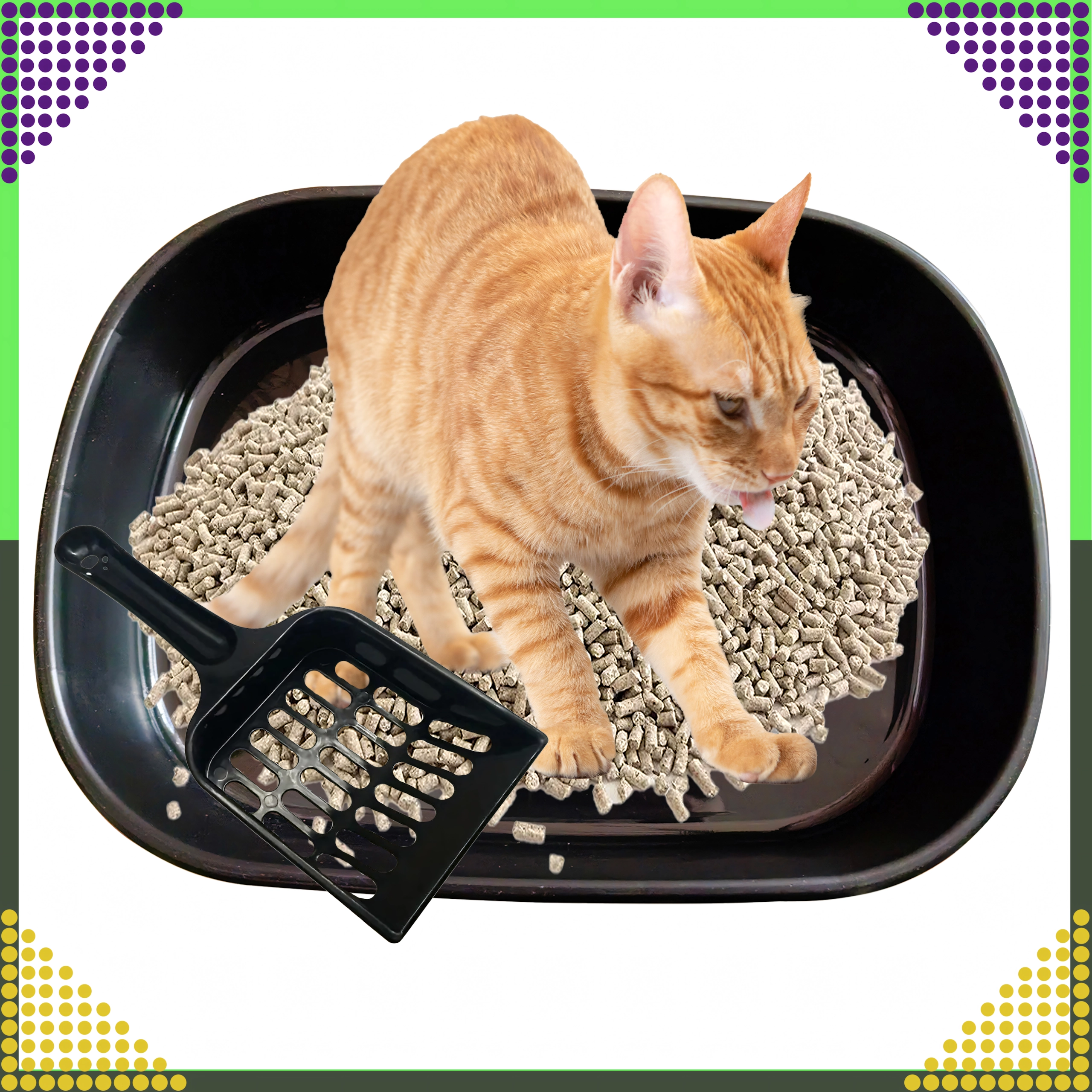 Toilettet er lavet af kvalitets, ikke‑giftig plast, som er holdbar, hygiejnisk og let at vaske af. Den separerede bund og den medfølgende skovl med huller muliggør hurtig sigtning og fjernelse af klumper, så vedligeholdelsen er enkel og ren.