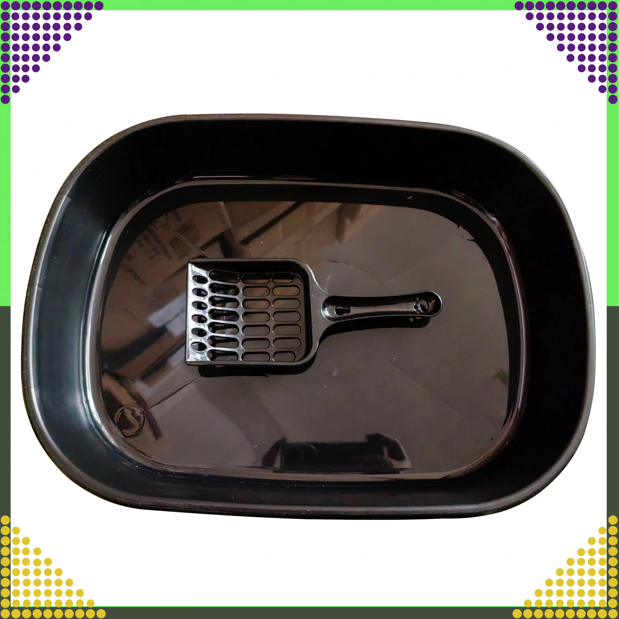 Dette åbne kattetoilet kombinerer funktionalitet og moderne udseende. Den elliptiske konstruktion gør det nemt for katte at komme til og bevæge sig, mens de høje og afrundede kanter hjælper med at holde strøelsen inde. De kompakte mål sparer plads og passer både i mindre lejligheder og større hjem.