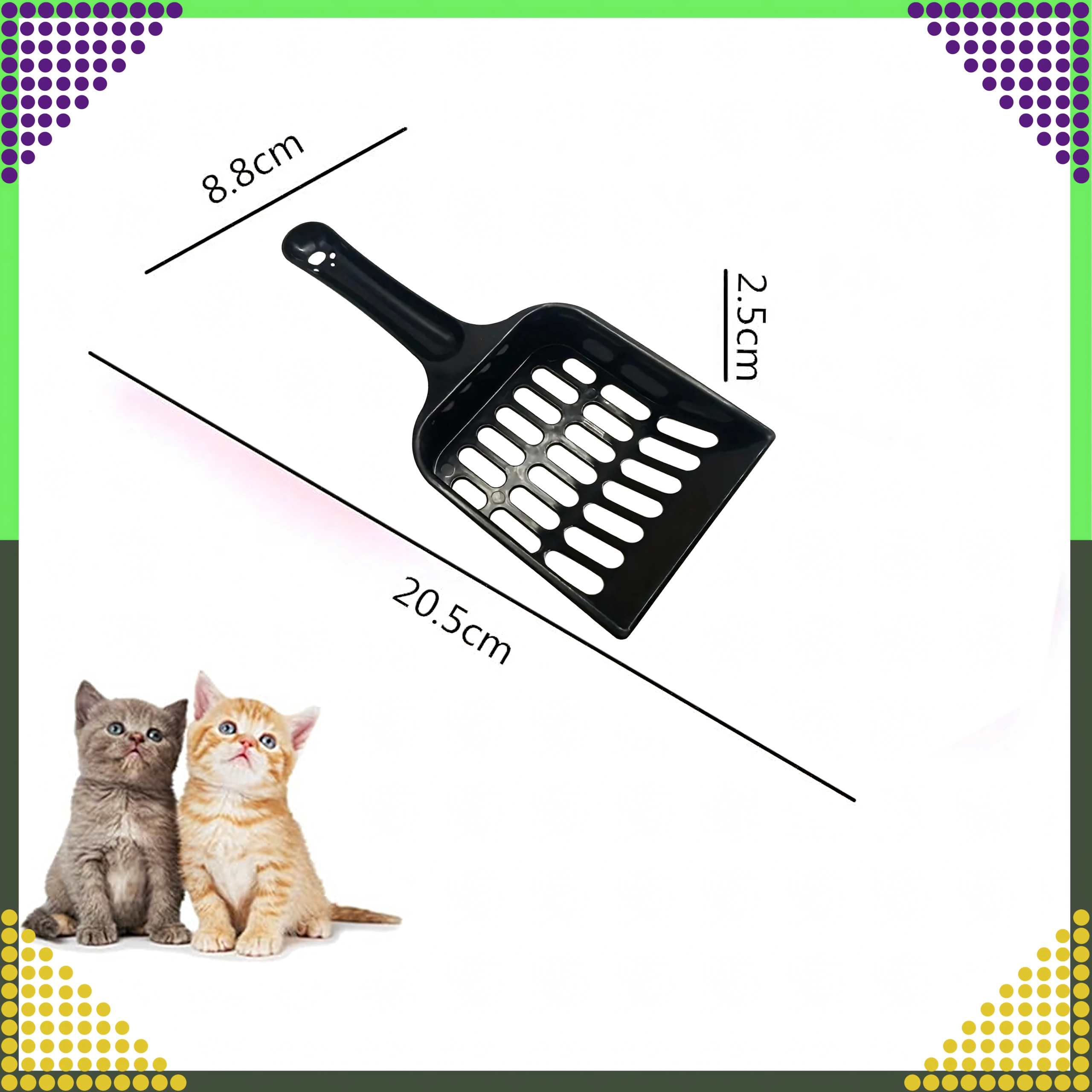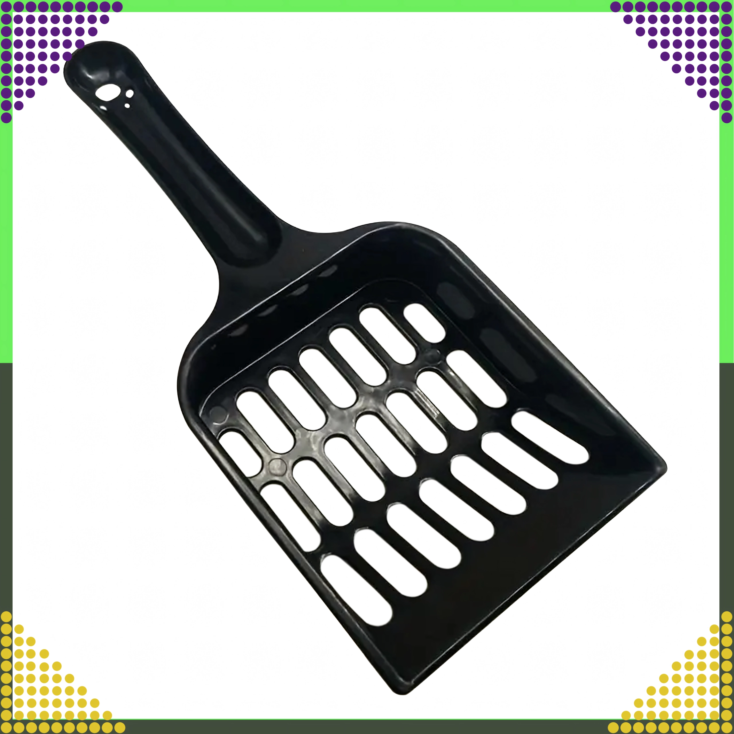 Inkluderer en robust skovl med sprækker til hurtig fjernelse af klumper og snavs uden at spilde strøelse.