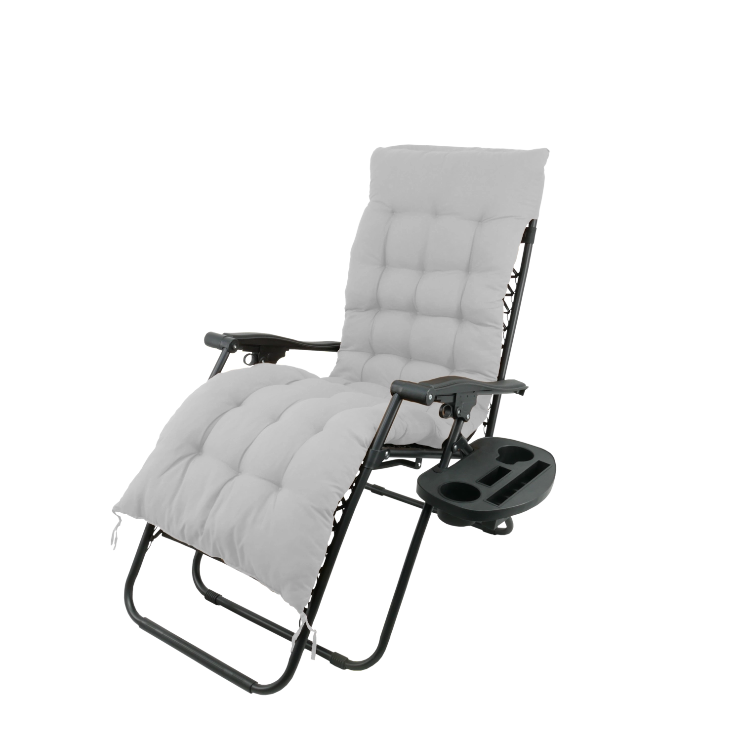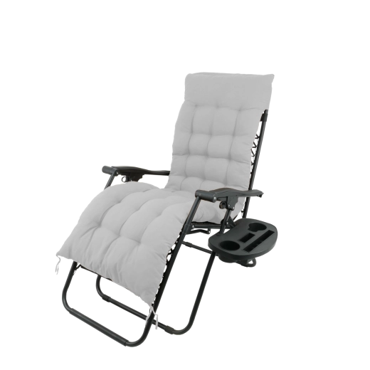 Den elegante solseng kombinerer en robust stålramme med åndbart 1x2 Textilene-stof og en blød grå pude. Du kan nemt indstille den optimale liggestilling, og takket være den sammenklappelige mekanisme er den let at bære og opbevare. Det praktiske aflægningsbord ved ryglænet rummer drik, telefon og småting, så du har alt inden for rækkevidde.