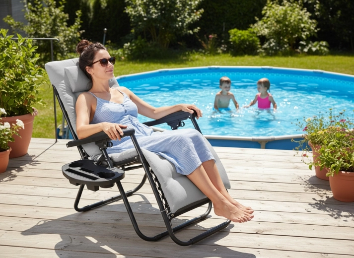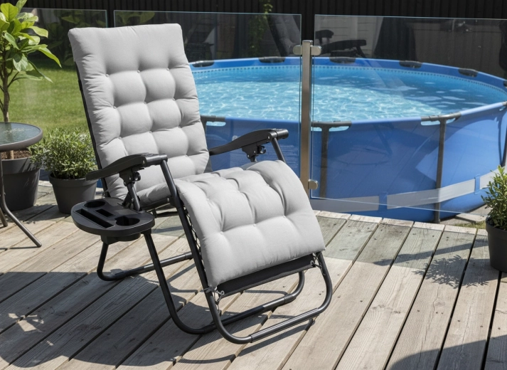 Leder du efter en behagelig havestol til daglig afslapning? Denne model tilbyder stabilitet takket være pulverlakeret stål, nem vedligeholdelse og et moderne look, der passer til enhver udemiljø. Perfekt ved poolen, på terrassen, altanen og til camping.