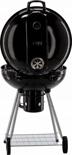 Denne klassiske runde kulgrill kombinerer den traditionelle røgede aroma med moderne udstyr for maksimal komfort. Låget med ventilationsåbning og indbygget termometer gør temperaturkontrol let uden unødigt at løfte det. Den emaljerede skål og låg holder varmen effektivt og er modstandsdygtige over for korrosion.