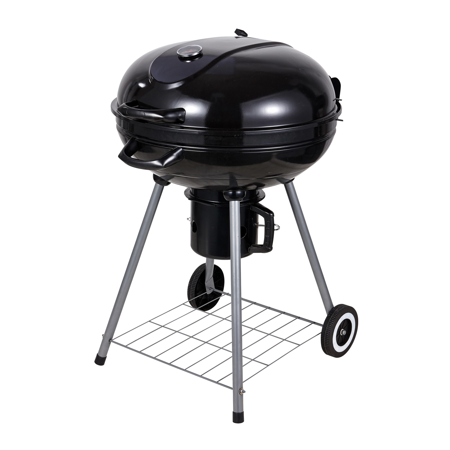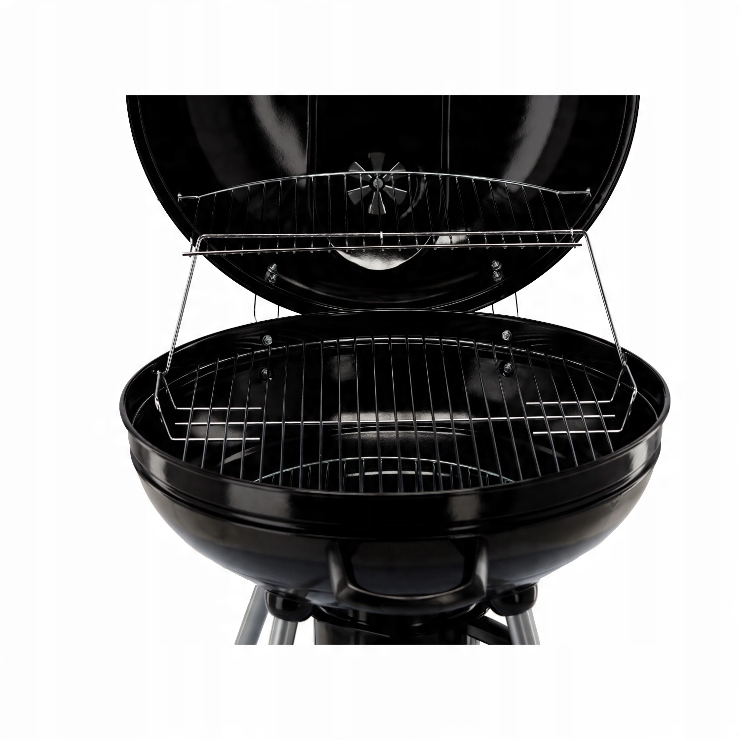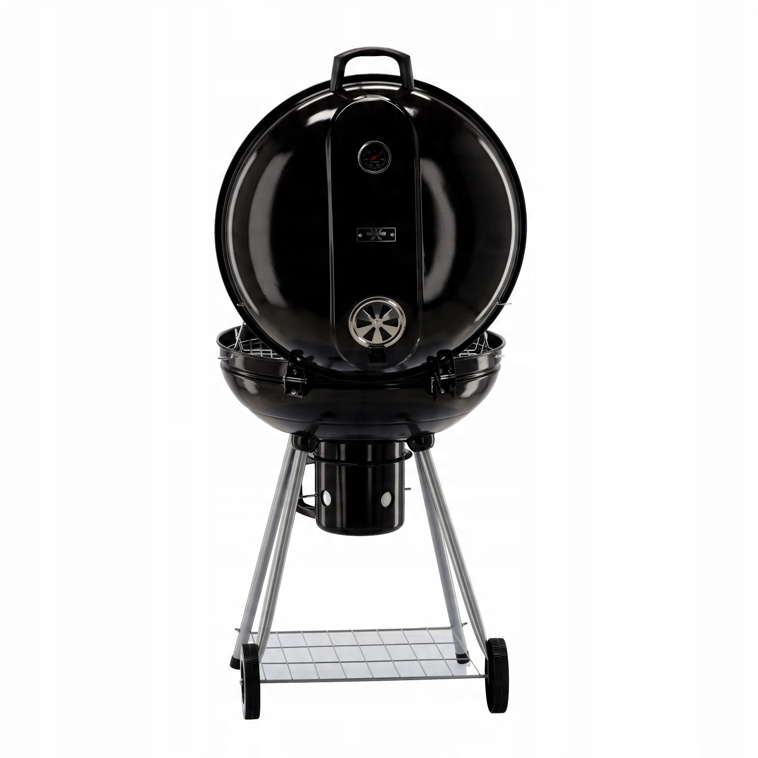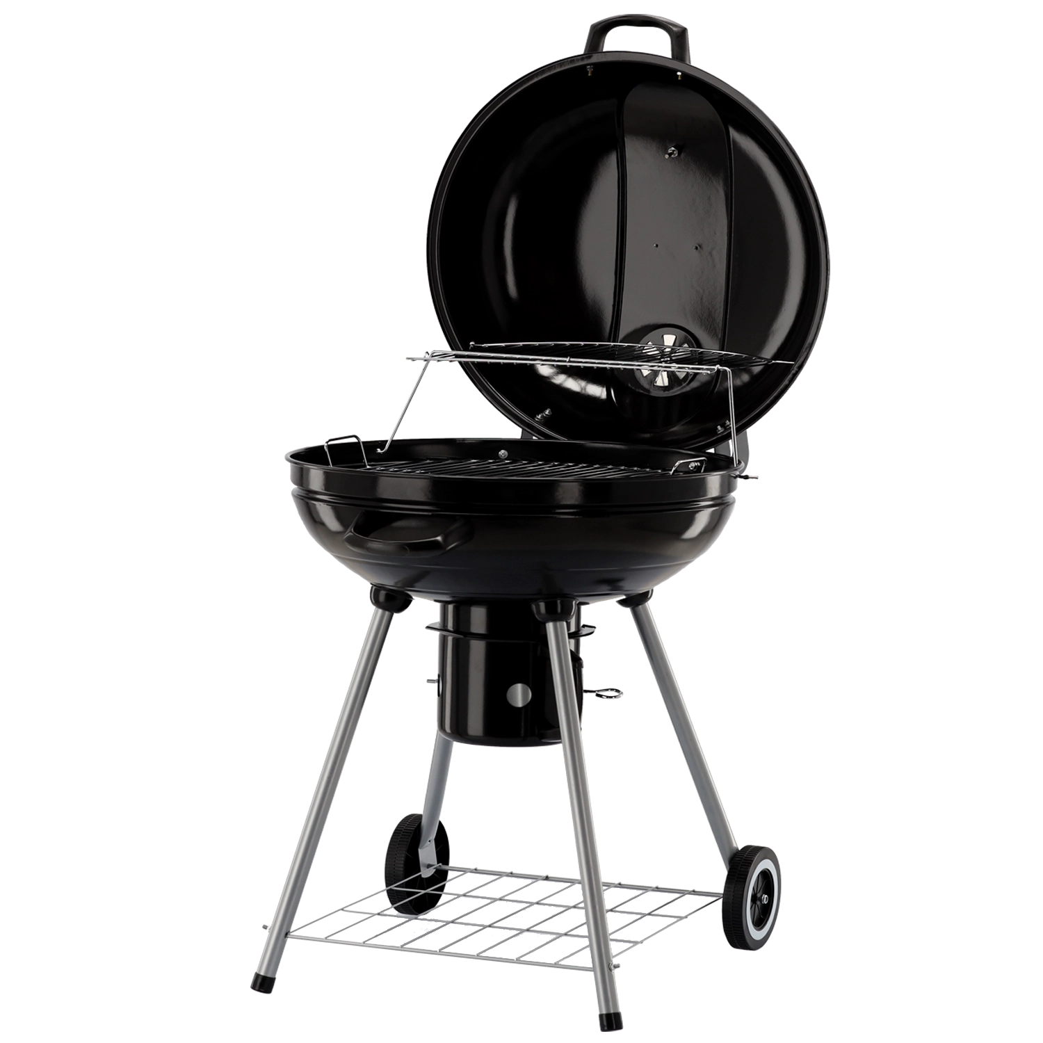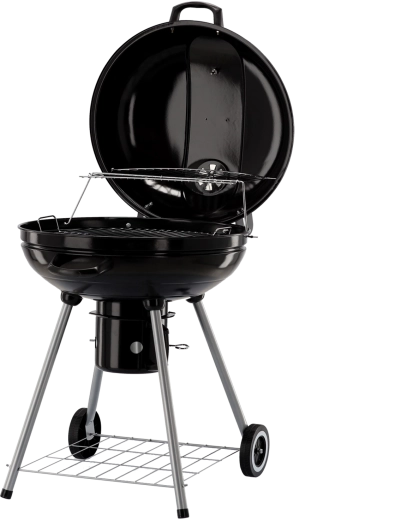 Nyd den autentiske grillsmag med en rund trækulsgrill, der tilbyder et emaljeret ildkammer, integreret termometer i låget, en stor forkromet grillrist og en praktisk askebeholder. Takket være hjul for nem flytning og en stabil konstruktion er den et perfekt valg til have, terrasse og picnic.