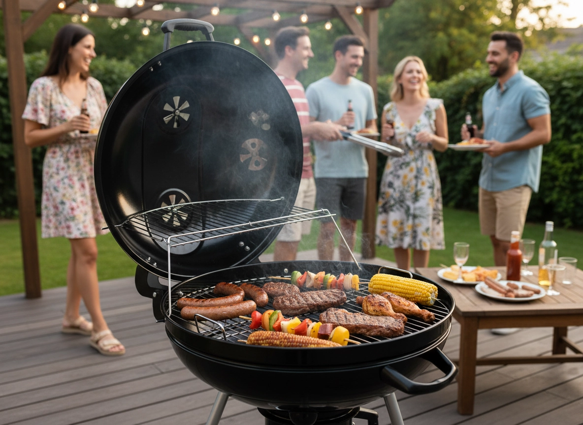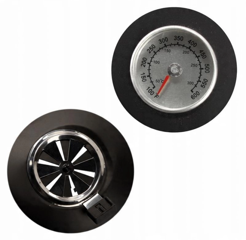 Det integrerede termometer og ventilationsåbningen i låget gør det muligt at overvåge og justere temperaturen uden at løfte låget – ideelt til saftige bøffer og langsom BBQ.