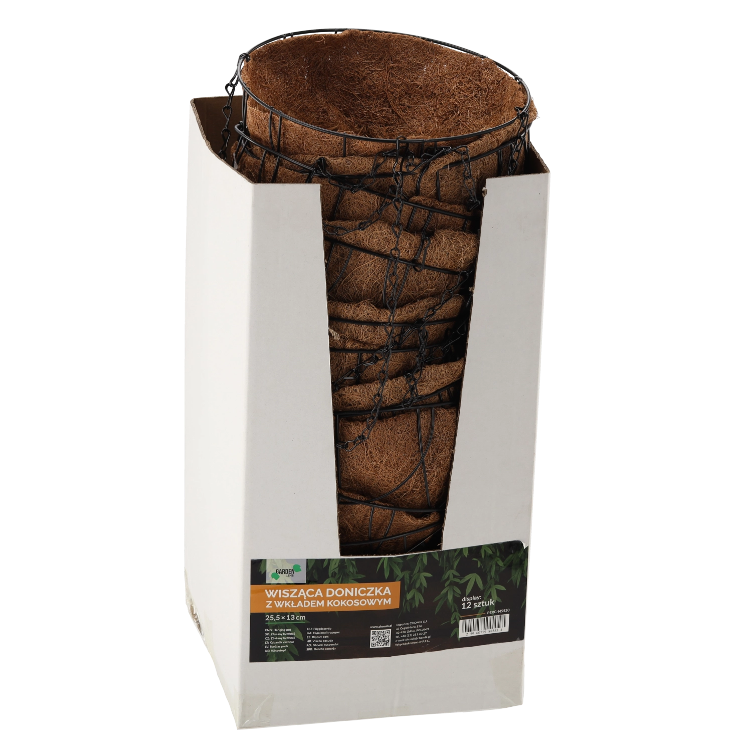 Øg attraktiviteten af din have, altan eller pergola med en hængende kurv med naturligt kokosindlæg. Den holdbare metalramme giver stabilitet, mens den åndbare kokosfiber opretholder optimal fugt og luft til rødderne. Denne blomsterkurv er et fremragende valg til både blomstrende og hængende kompositioner.