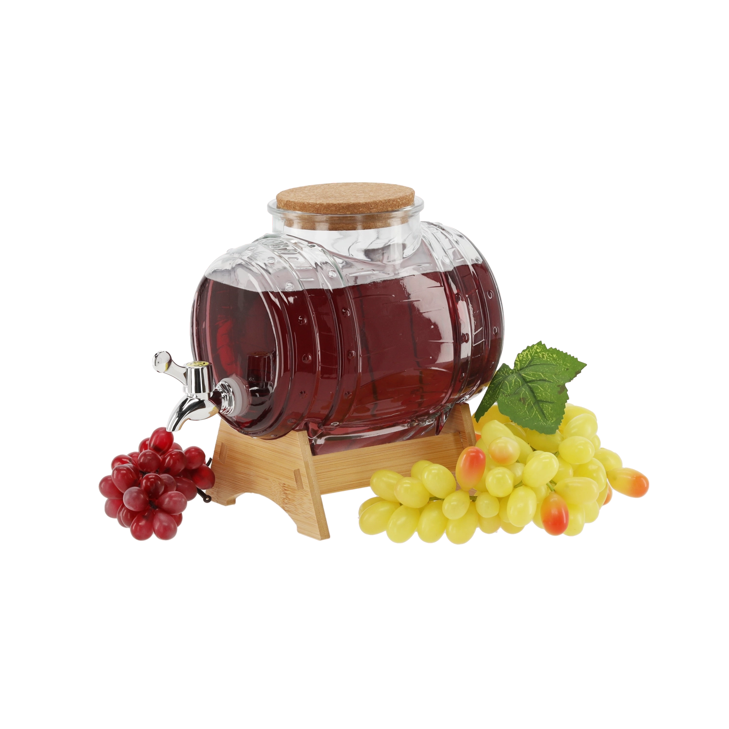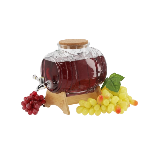 Stilfuld drikkedispenser med en kapacitet på 3 l med bred hals for nem påfyldning og rengøring, plastikhane for bekvem tapning uden spild og bambusstand for stabil placering – også over højere glas. Ideel til limonader, juicer, punch og hjemmelavede likører – en praktisk hjælper og et designelement til enhver fest.