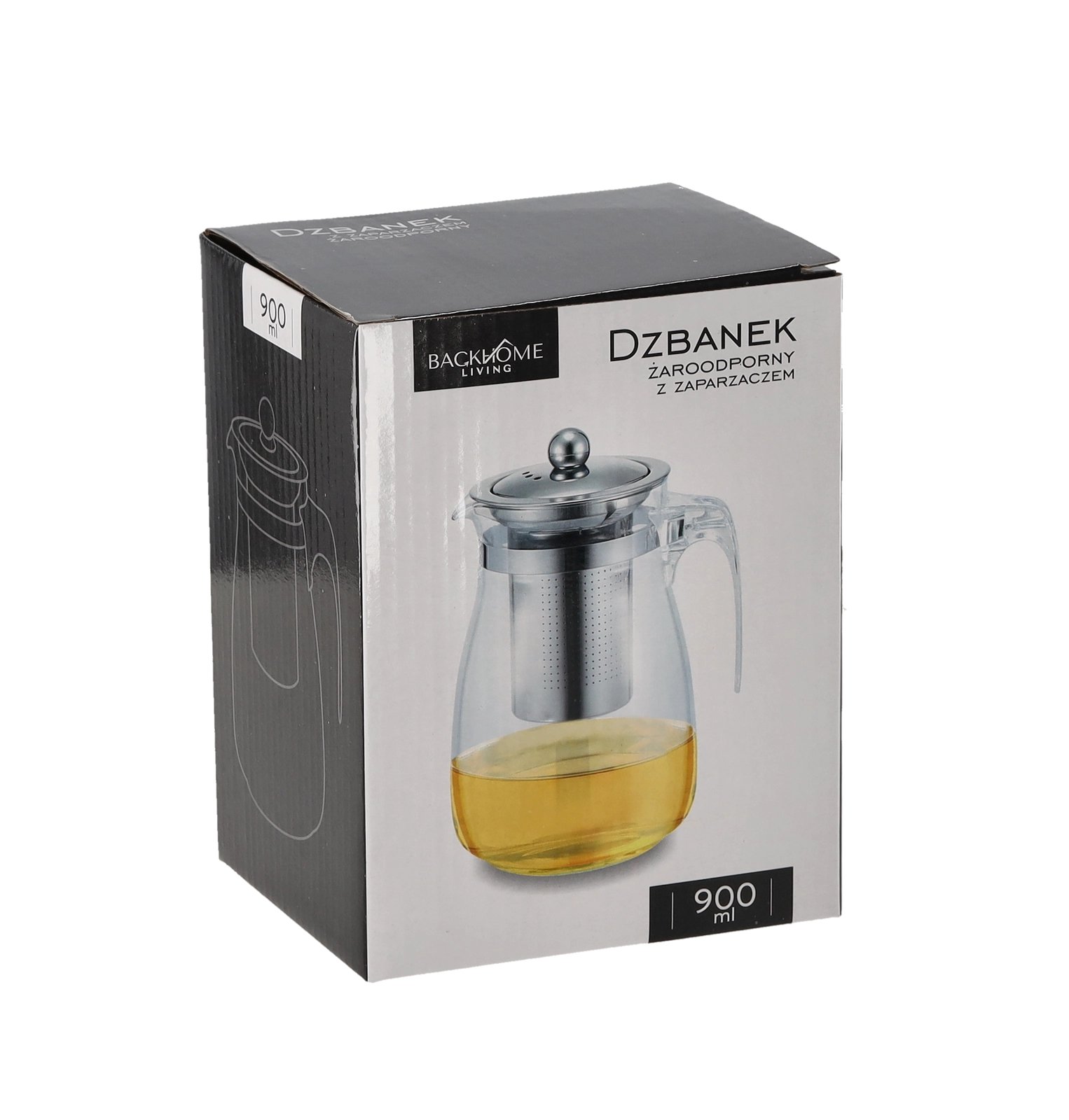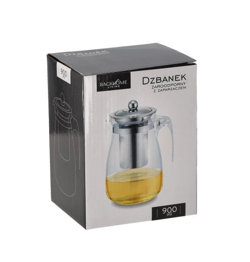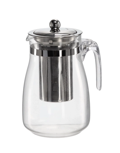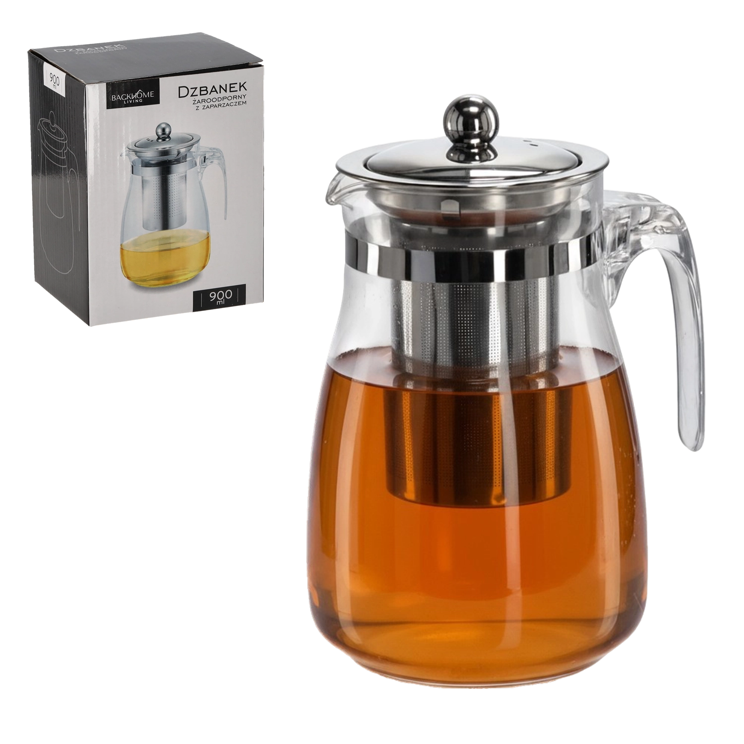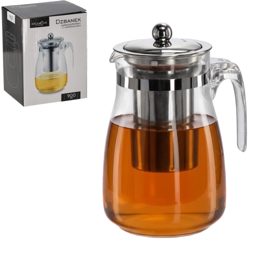 Elegant varmebestandig kande af borosilikatglas med metallåg og integreret si i rustfrit stål er ideel til tilberedning af te, kaffe og urtete. Med en kapacitet på 900 ml kan du lave flere portioner på én gang, det gennemsigtige glas gør det muligt at kontrollere drikkens styrke, og det ergonomiske håndtag gør det let at hælde uden at spilde. Varmebestandigt borosilikatglas, integreret si i rustfrit stål, kapacitet 900 ml og tåler opvaskemaskine gør denne kande til en praktisk hjælper i hverdagen.
