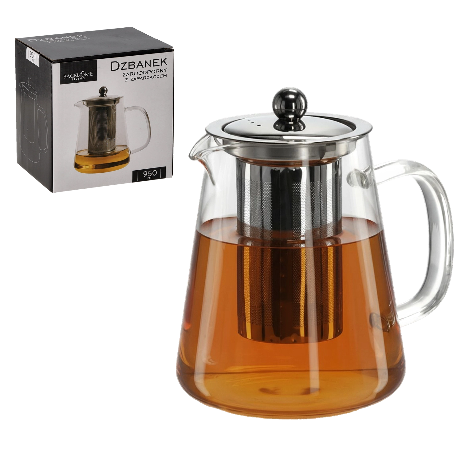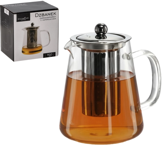 Nyd den rene smag af te eller urtete med en moderne glastekande på 950 ml. Det varmebestandige glas tåler temperaturskift, og det transparente design lader dig følge drikkens farve og intensitet i realtid. Det metalliske låg hjælper med at holde på varmen og giver kanden et elegant udseende.