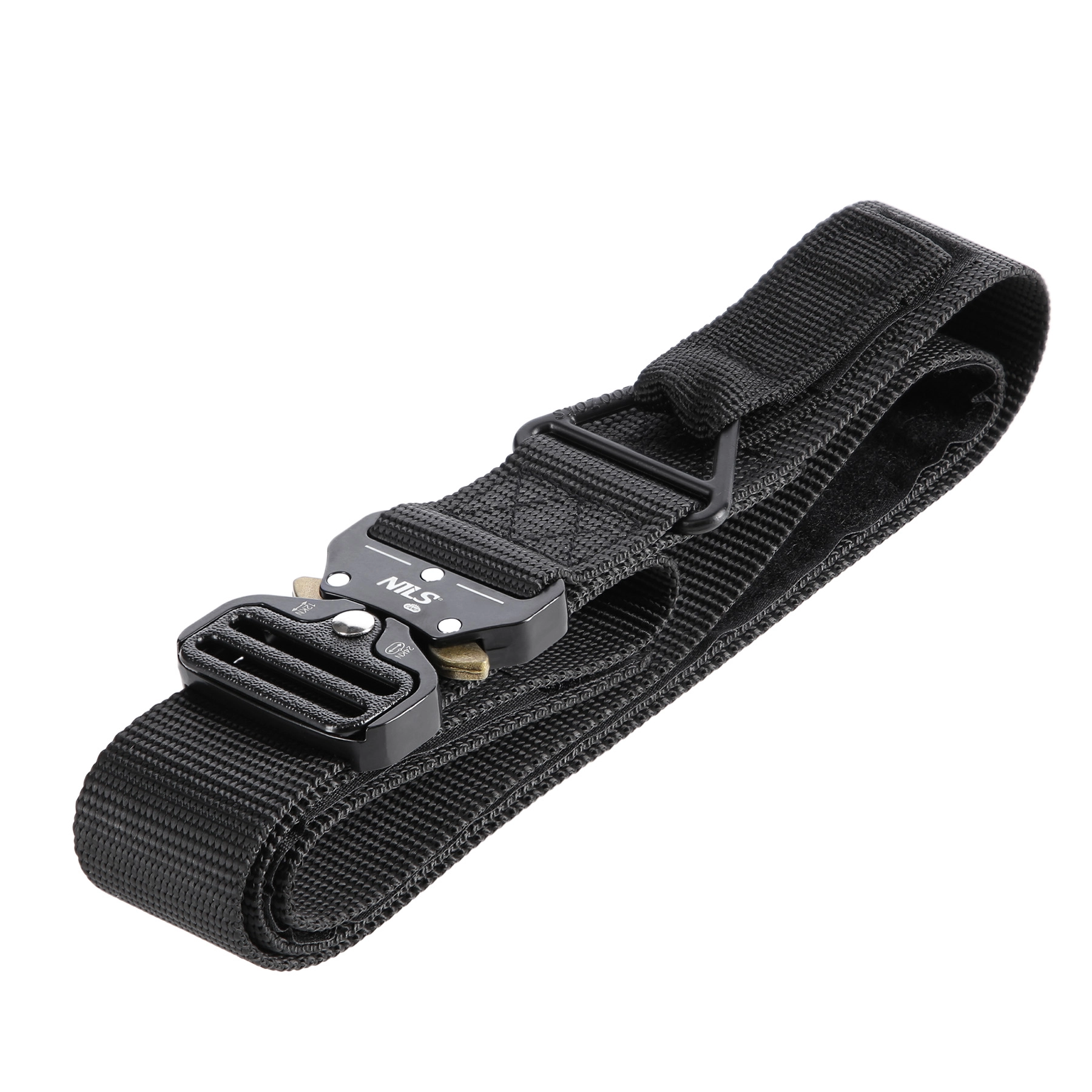 Det universelle taktiske bælte fra NILS Camp i sort har et hurtigudløser-spænde i metal af typen Cobra, en slidstærk nylonrem og robuste syninger for maksimal pålidelighed. Takket være justerbar længde på 125 cm og lav vægt er det ideelt til daglig brug, outdoor-aktiviteter og tjenstebrug. Et ekstra beslag til udstyr sikrer, at du har nødvendigt grej altid ved hånden.