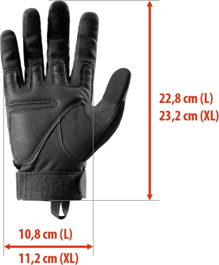 Den teksturerede overflade og forstærkede sømme forbedrer stabiliteten i grebet om værktøj, styr og udstyr.