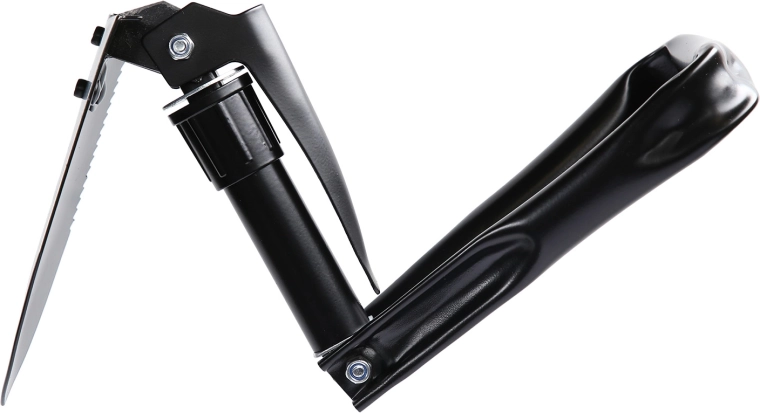 Ét redskab, tre funktioner: spade til gravning, savtakket klinge til at skære rødder og grene samt hakke til hårdt terræn. Ideel til camping og nødsituationer.