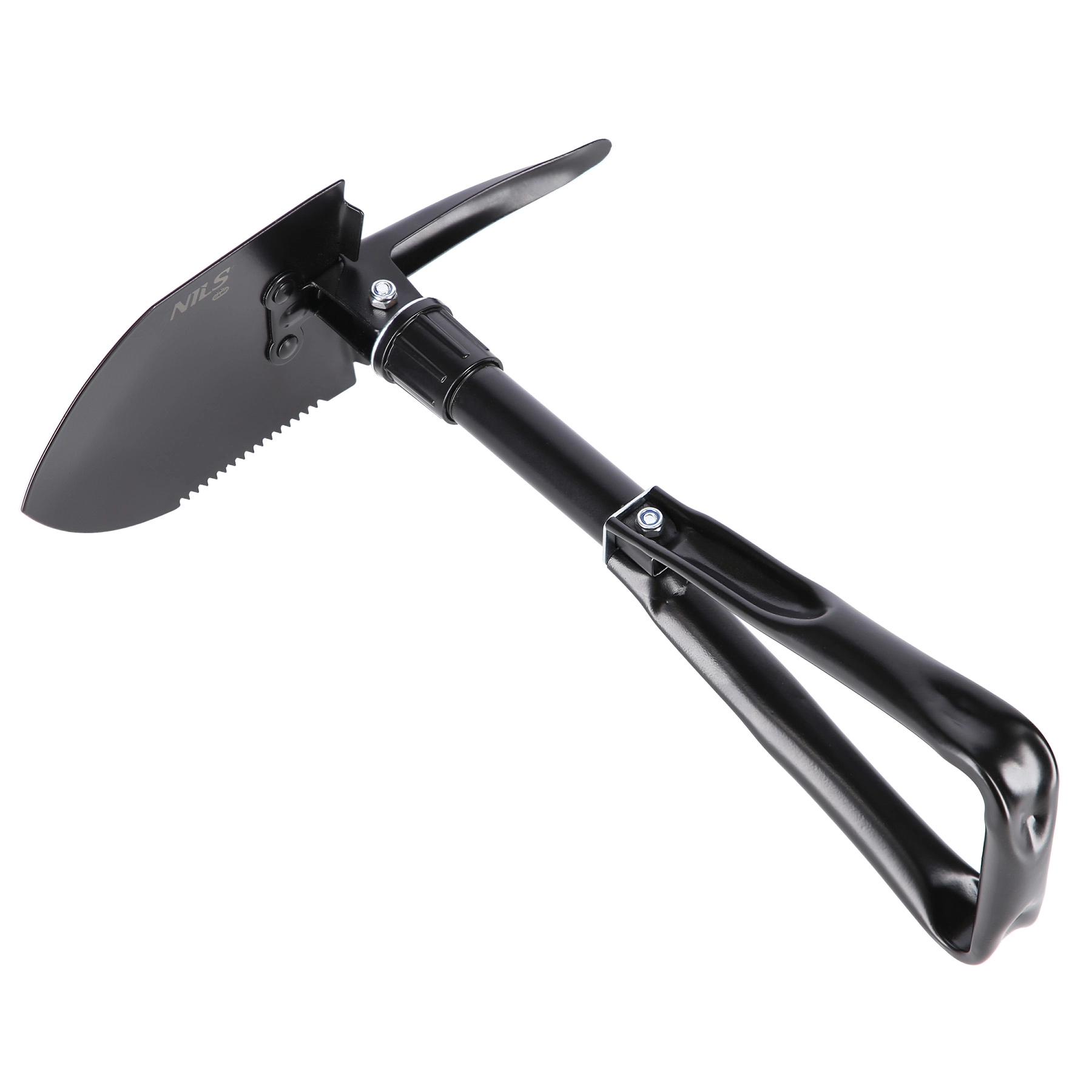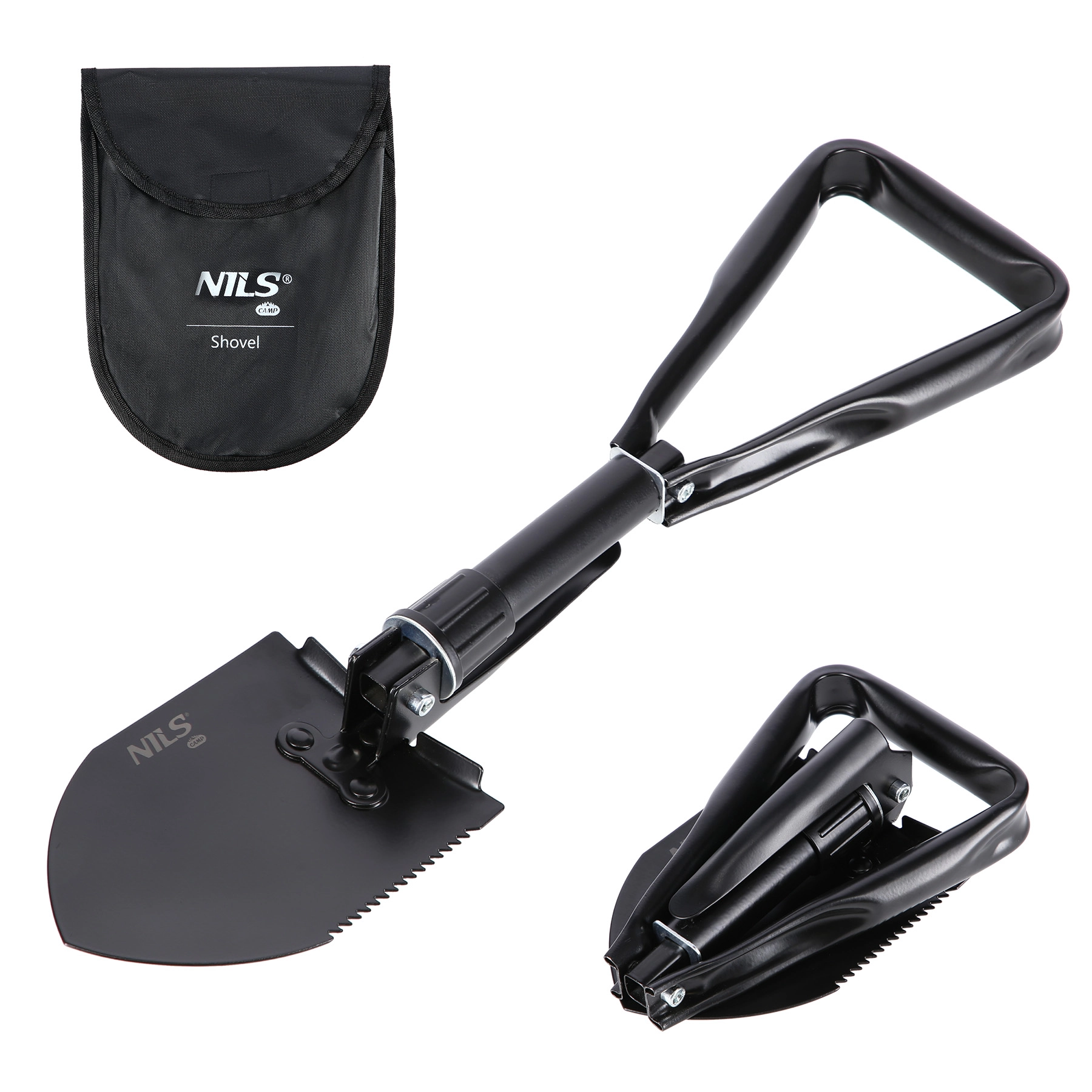 Den sammenklappelige multifunktionsskovl NILS Camp er en uundværlig makker til camping, vandring og som nødudstyr i bilen. Den kombinerer tre funktioner i ét: spade til gravning, savtakket klinge til skæring og hakke til at bryde hård jord. Takket være den solide stålkonstruktion og det låsbare led klarer den krævende opgaver ved bålplads, terrænforberedelse og hurtige reparationer i naturen.