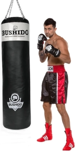 Professionel boksepose DBX BUSHIDO til intensiv træning i boksning, kickboksning og MMA. Takket være den robuste 7-lags konstruktion, holdbare svejsede kæder og drejeophæng klarer den hårde slag og spark, minimerer vridning og tilbyder lang levetid ved daglig brug.