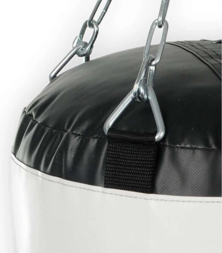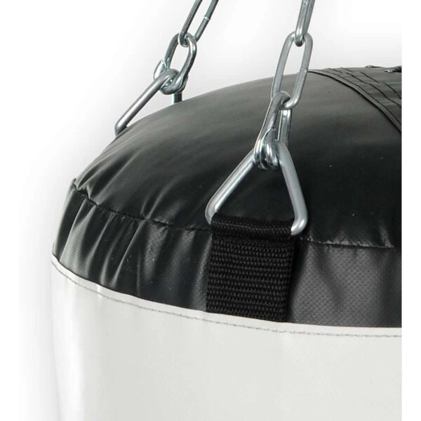 Den øverste snørelukning gør påfyldning og service nem, og den dobbeltforstærkede bund med ekstra stropper øger den samlede levetid. Den ideelle lofthøjde til ophængning er ca. 215 cm, kæderne har ved standardophæng en længde på 45 cm og kan let forkortes med karabinhage.