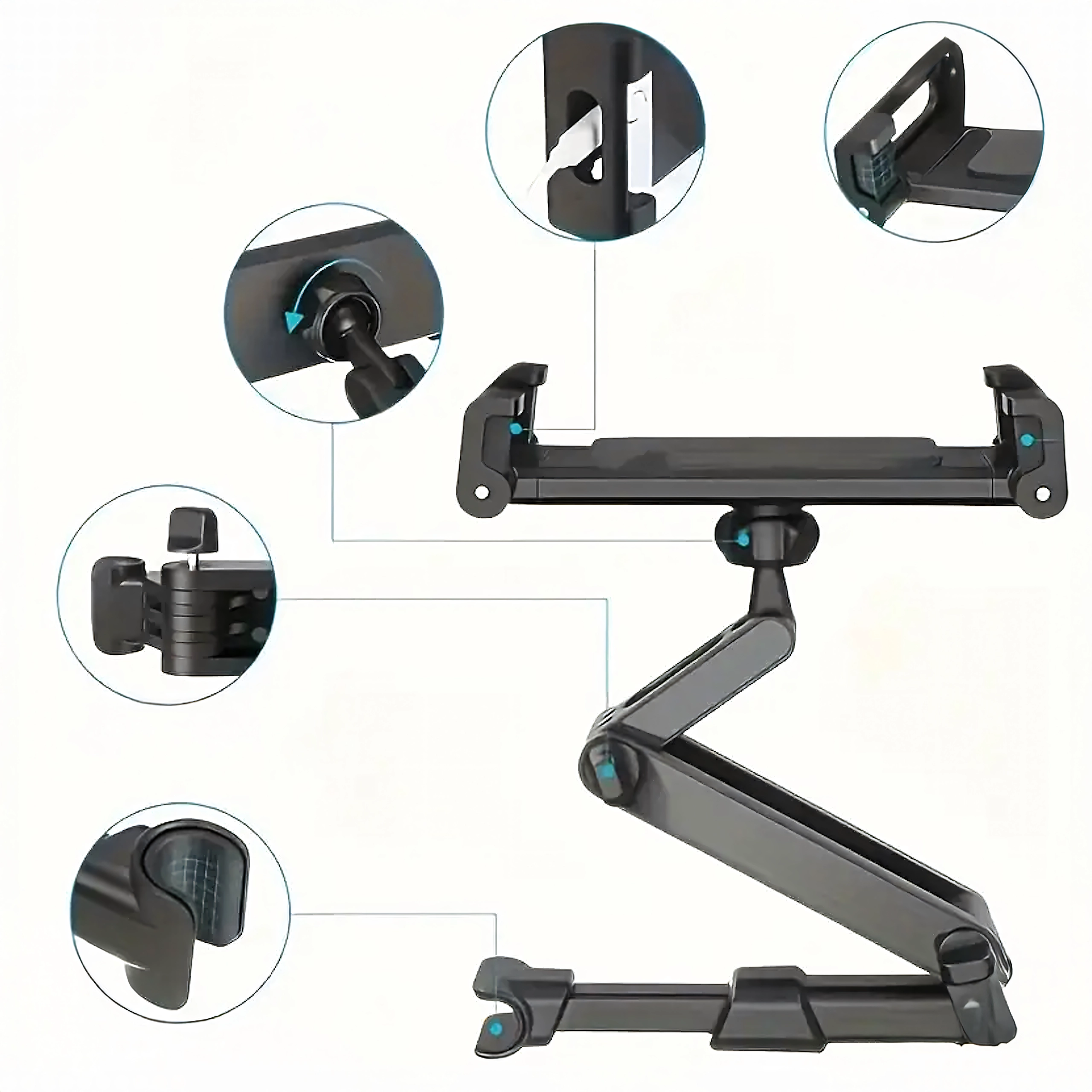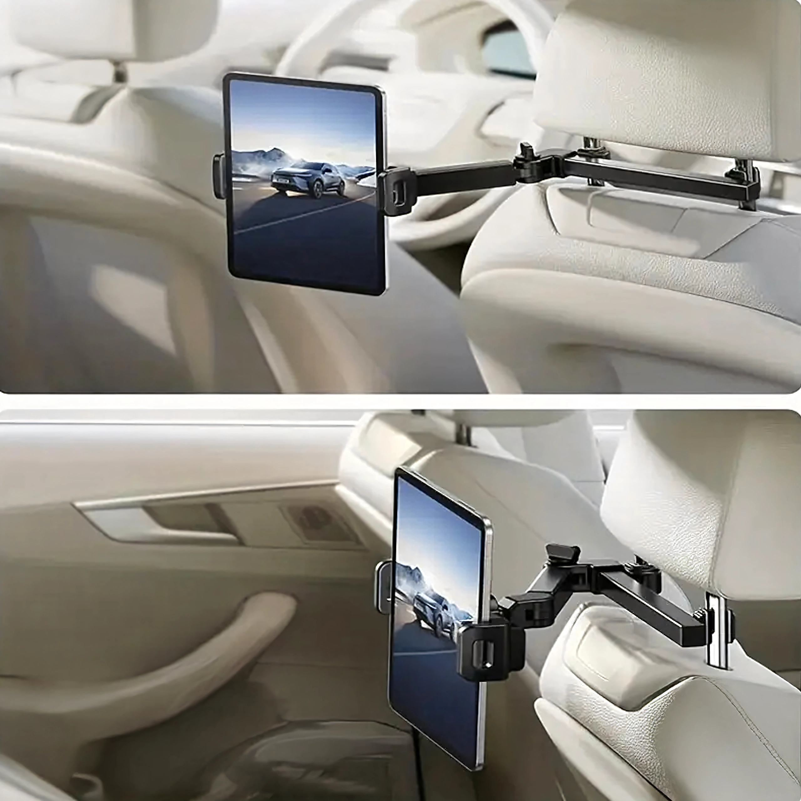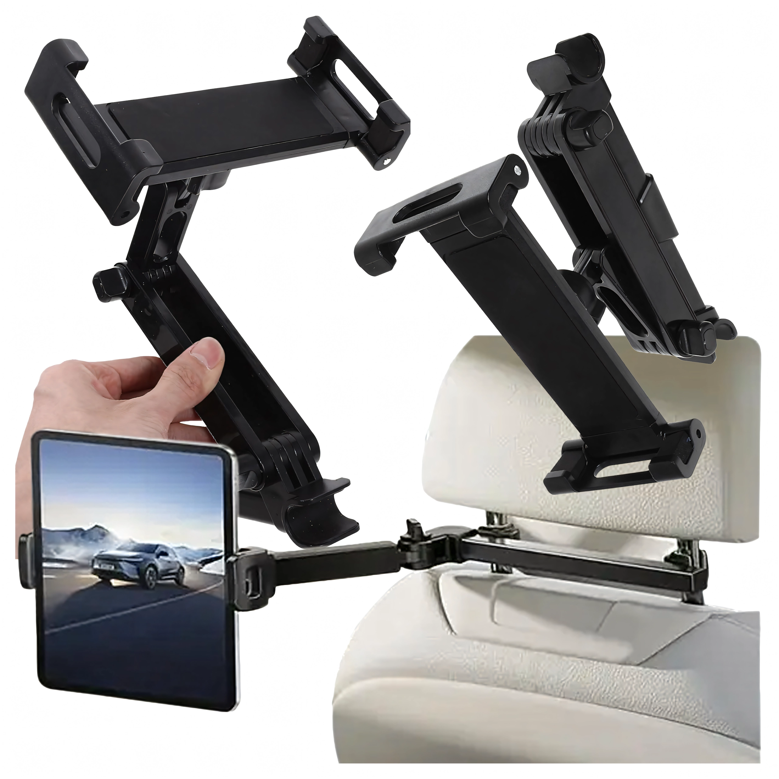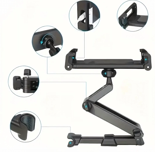 Universel holder til nakkestøtten forvandler bagsædet til et multimediemiljø. Takket være leddelt konstruktion og kugleled tilbyder den 360° rotation, bred kompatibilitet med telefoner og tablets og stabil fastgørelse uden rystelser – ideel til film, spil og læring på farten.