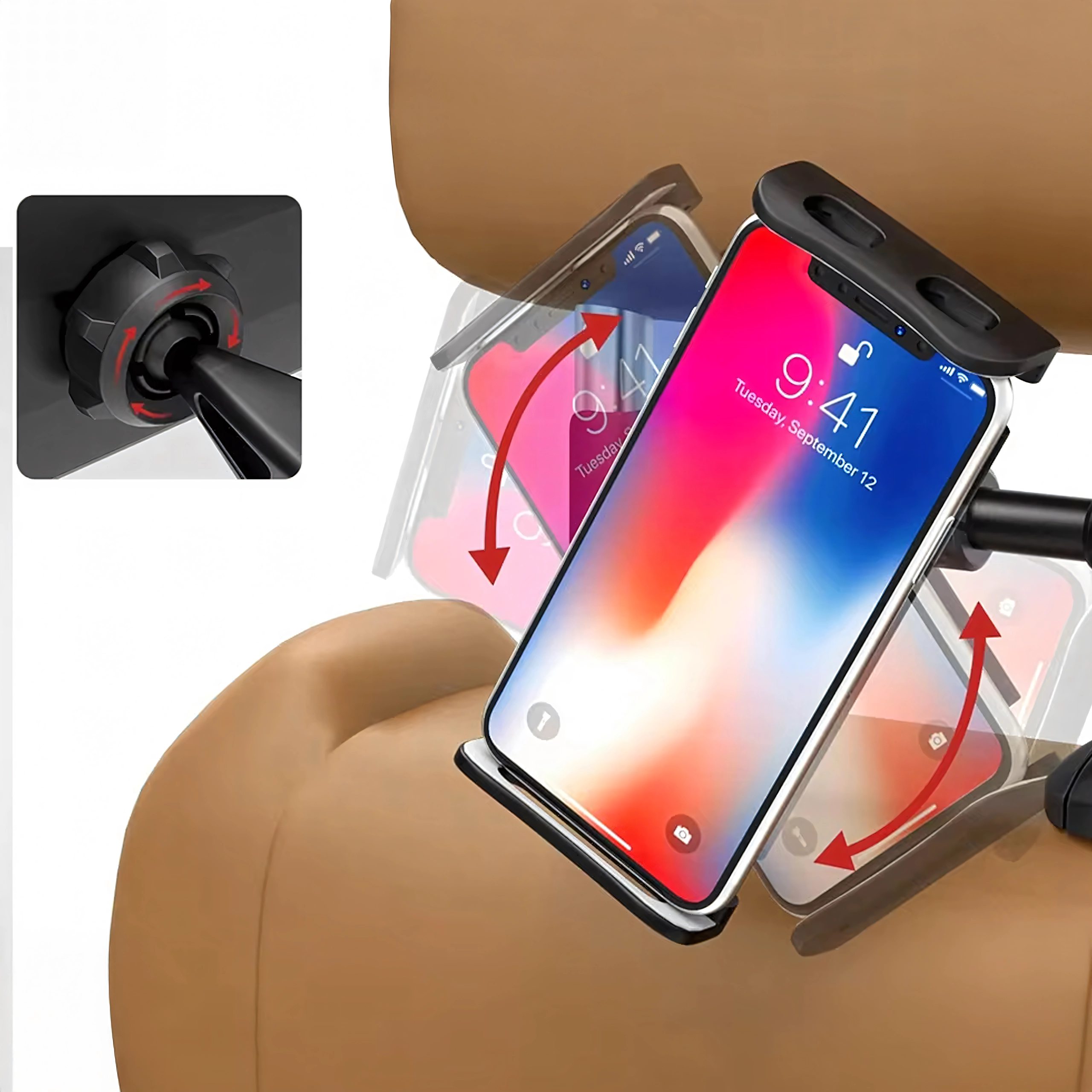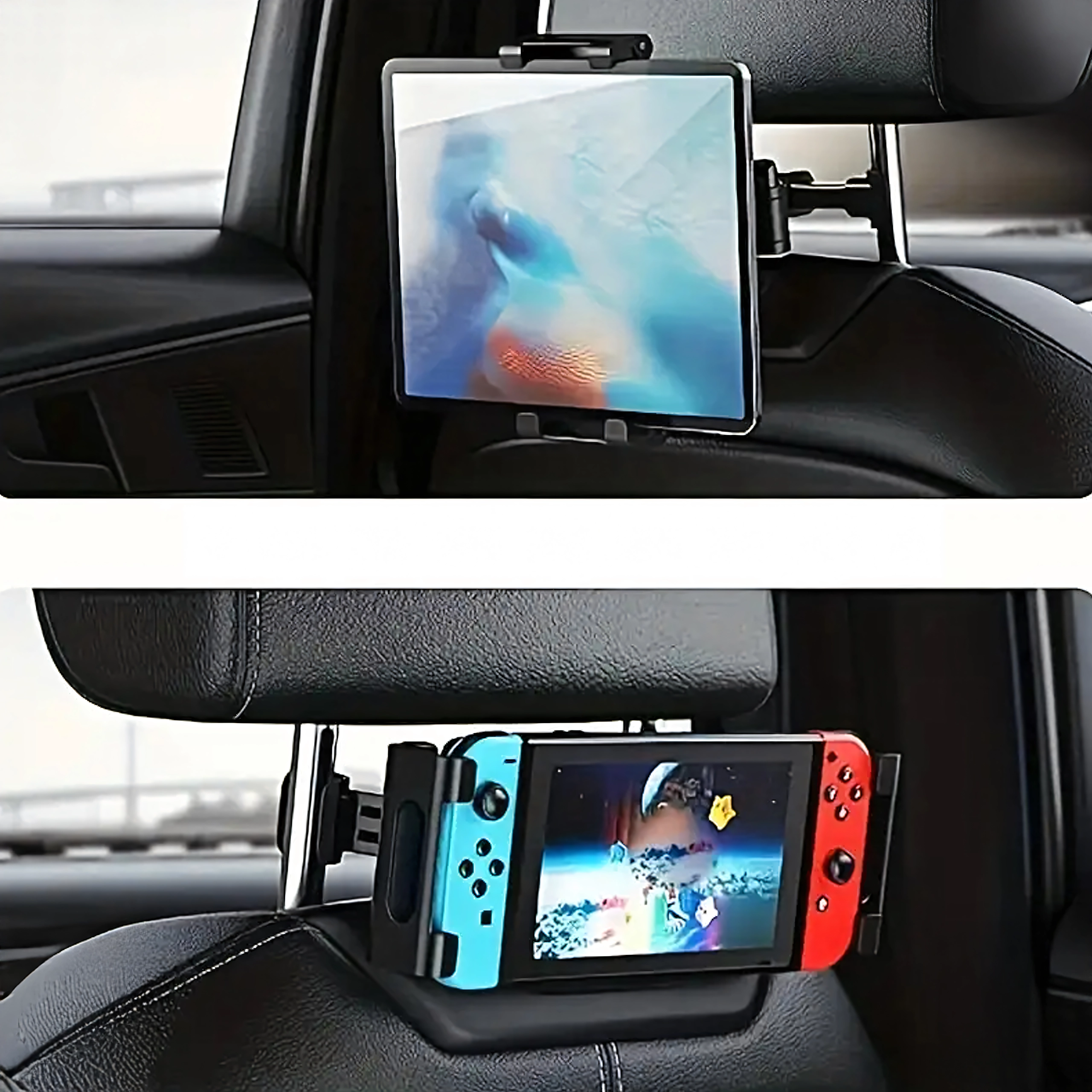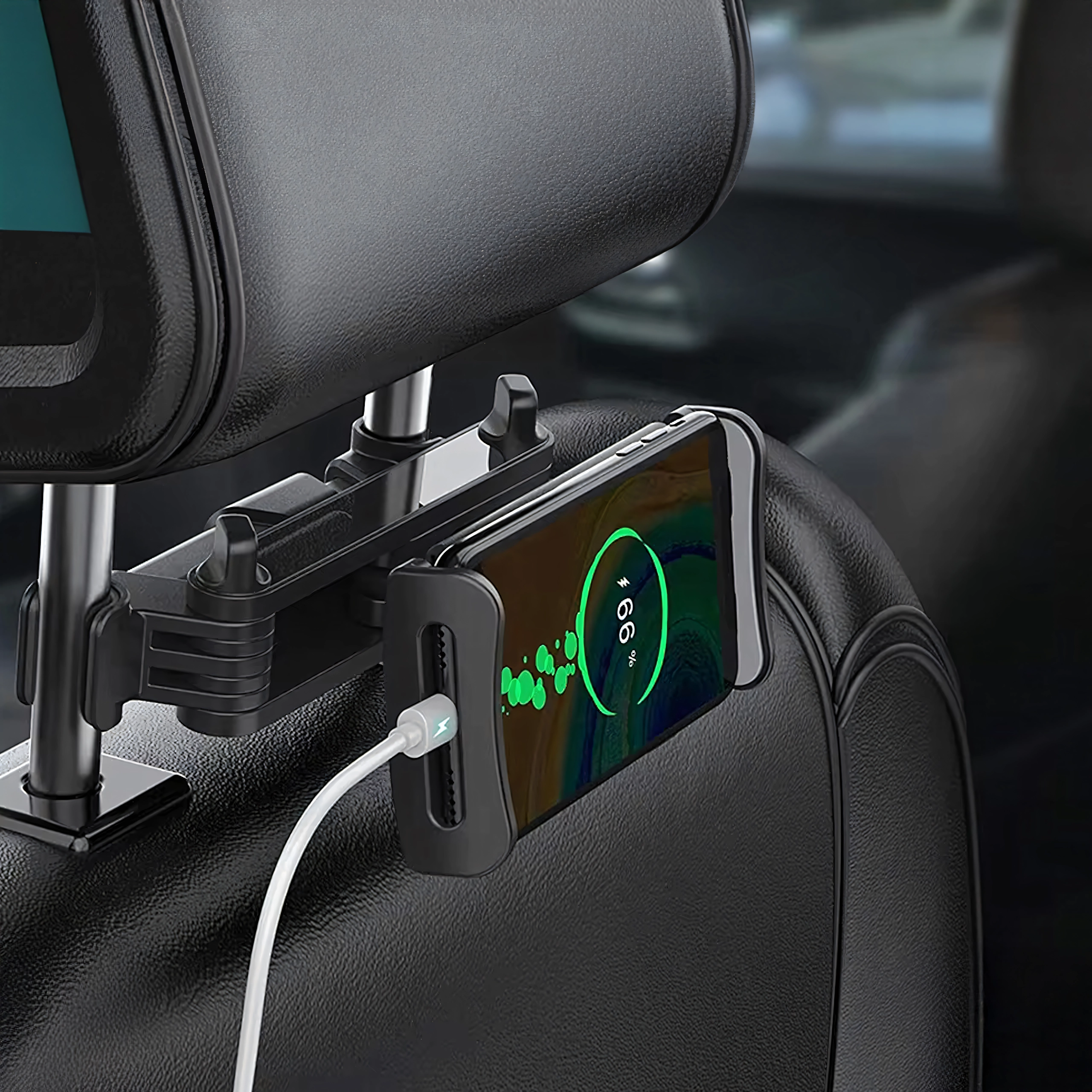 - Holder til bilens nakkestøtte til telefon og tablet