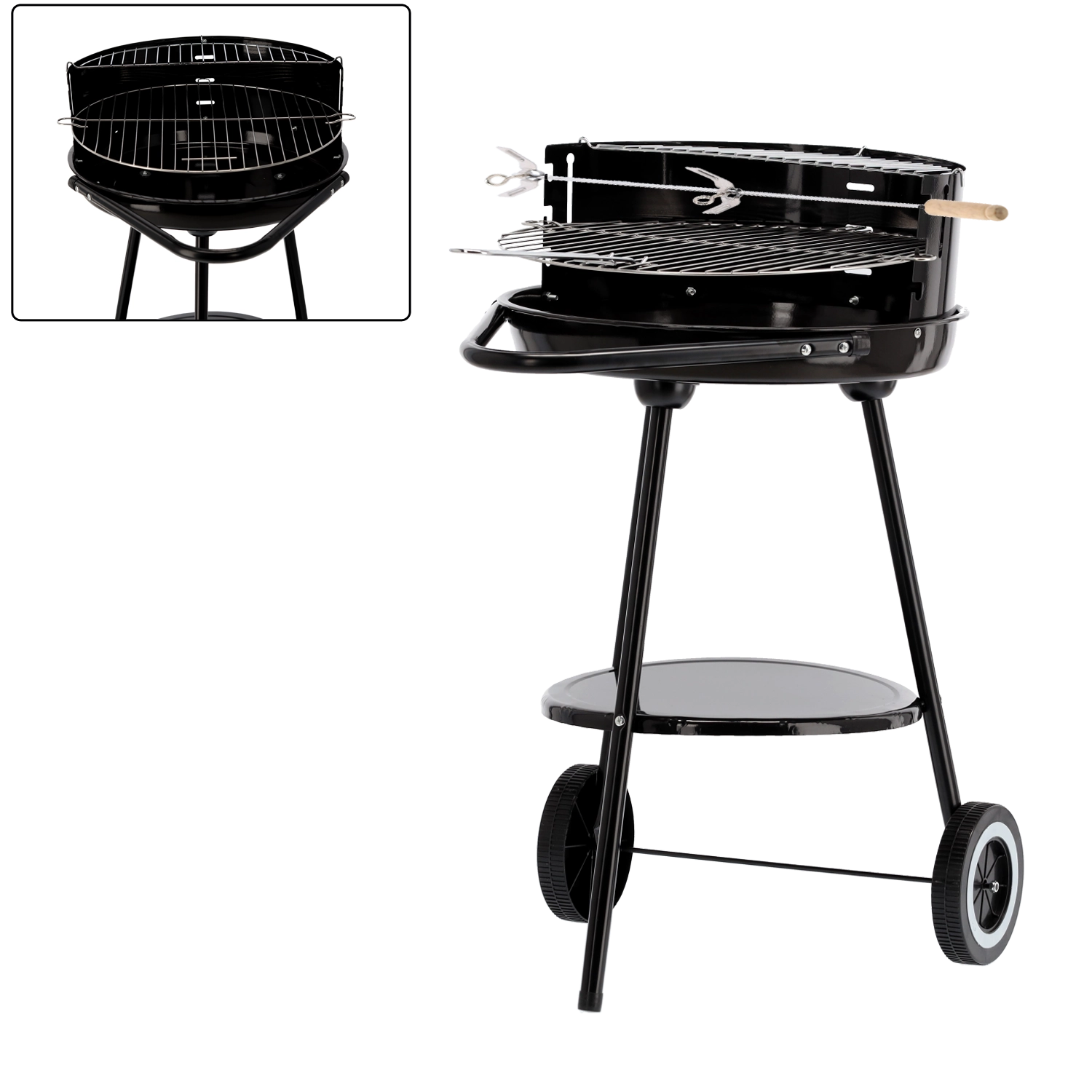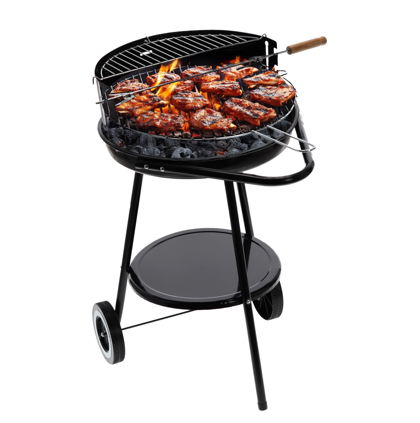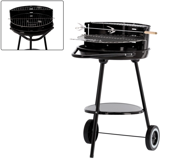 Klassisk havekulgrill med hjul for nem flytning er det ideelle valg til familiegrill. Den tilbyder stabil ildskål, vindskærm og forkromet grillrist med en ekstra øverste rist til bekvem genopvarmning af retter. Takket være praktisk mobilitet og enkel betjening tilbereder du saftige bøffer, pølser og grøntsager når som helst og hvor som helst.