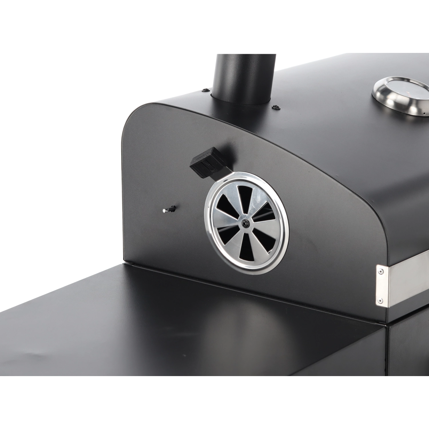 Det indbyggede termometer i låget og skorsten med spjæld gør det muligt at regulere varmen jævnt uden at løfte låget hele tiden. Så opnår du nemt både low & slow og kraftig bruning.