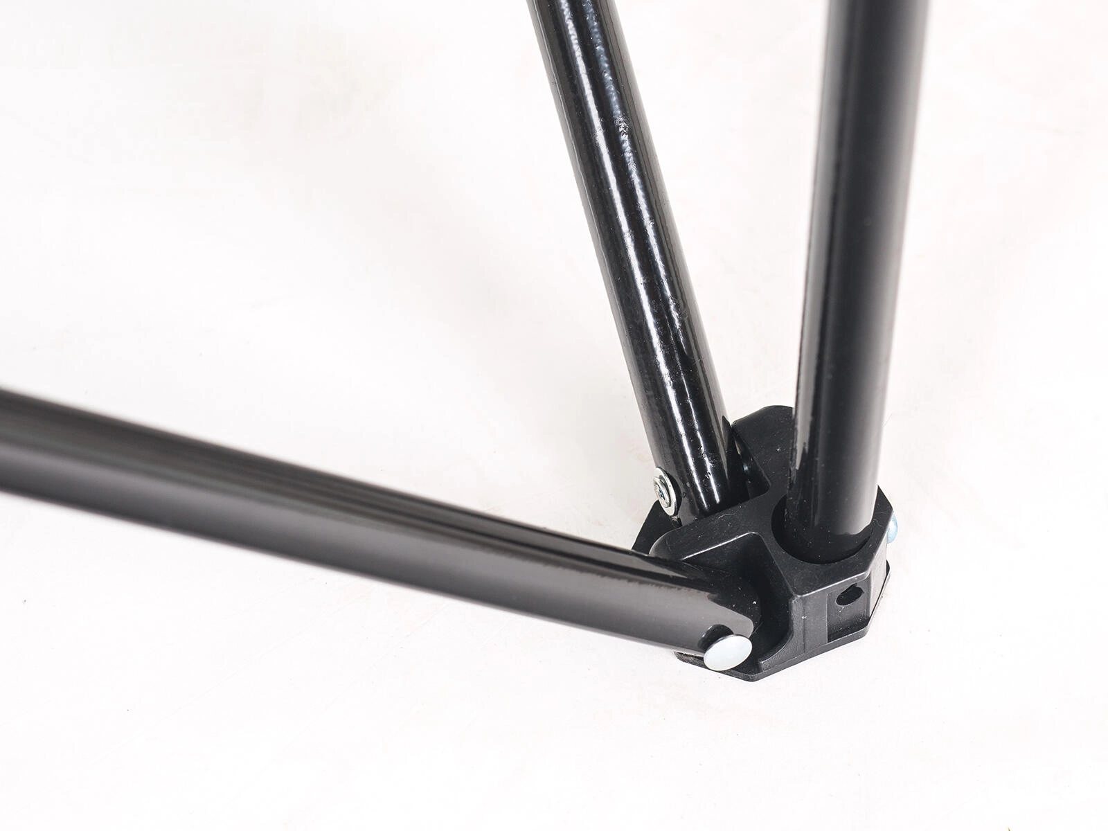 Den sorte metalramme med krydsafstivning giver pålidelig stabilitet og en bæreevne op til 100 kg for sikker siddeplads i terræn.