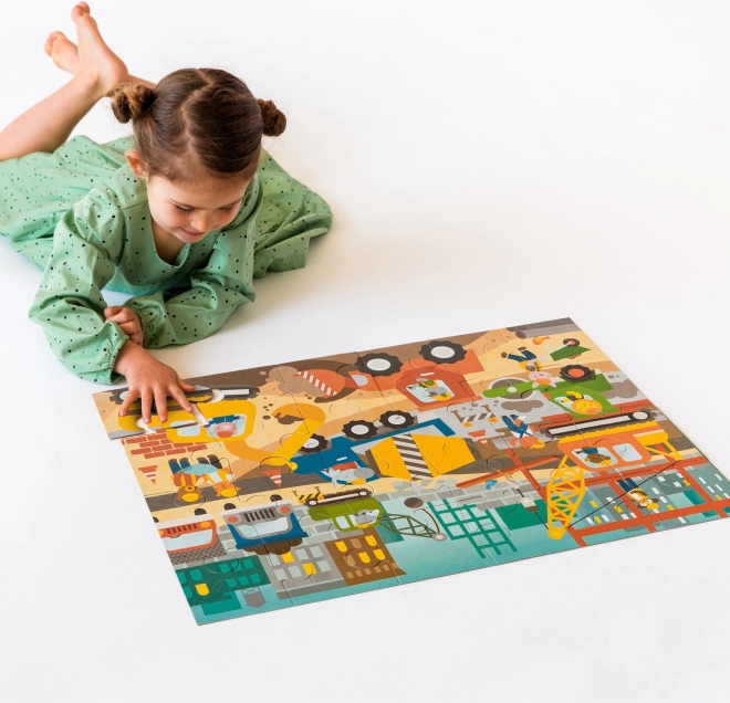 Puslespillet støtter udviklingen af logisk tænkning og koordination hos børn takket være farverige illustrationer af byggekøretøjer og arbejdere.