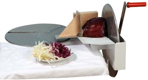 Praktisk manuelt kålskærer til hurtig og jævn snitning direkte ved bordet. Takket være den roterende mekanisme, 5 skarpe knive og en stabil tryk-/spændeklemme klarer du tilberedningen af kål nemt og sikkert. Den er aftagelig, pladsbesparende og nem at rengøre.