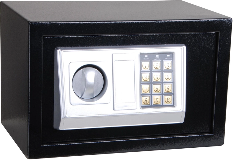 Pålideligt digitalt pengeskab med udvendige mål 310 × 200 × 200 mm er ideelt til opbevaring af kontanter, dokumenter, smykker og andre værdigenstande. Åbning via numerisk tastatur sikrer hurtig adgang, mens mekanisk nøgle fungerer som nødløsning. Den robuste metalkonstruktion og det kompakte design gør det nemt at placere på en hylde, i et skab eller fast forankre.