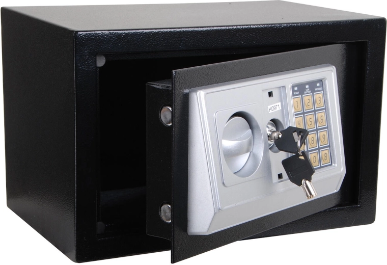 Ud over den elektroniske lås kan pengeskabet også åbnes med en mekanisk nøgle. To sikkerhedsnøgler medfølger til nødsituationer.