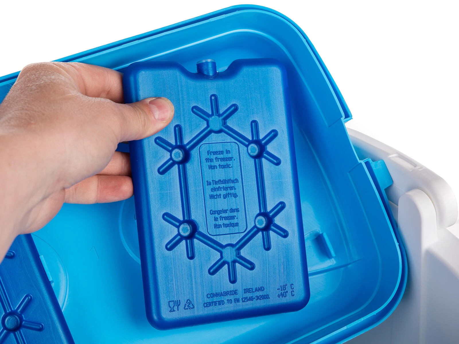 Passer perfekt i standardkølebokse, inklusive låg med slots til elementer. Holder mad og drikke friske længere på rejser og udflugter.